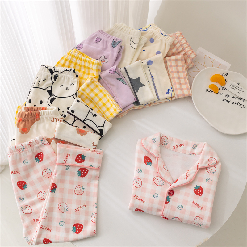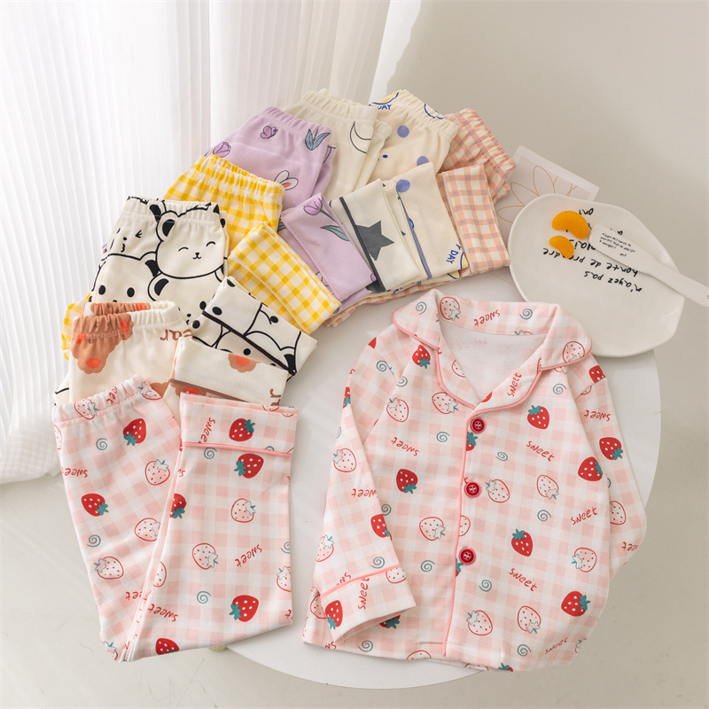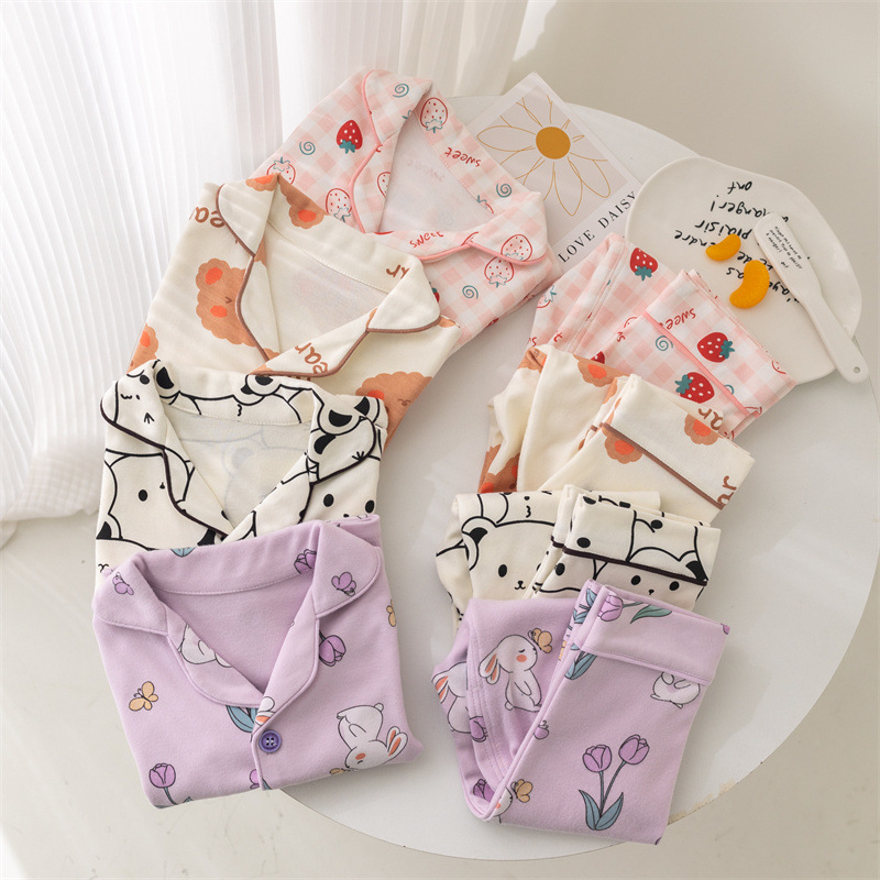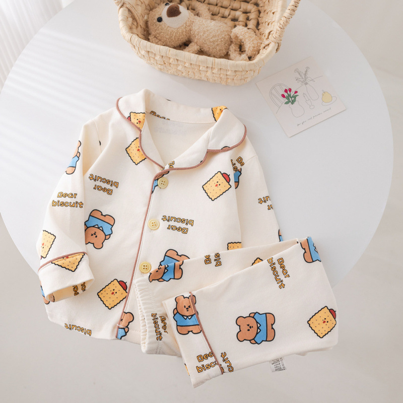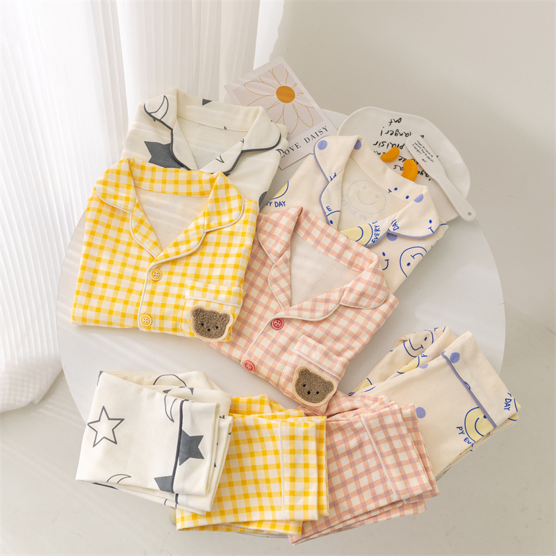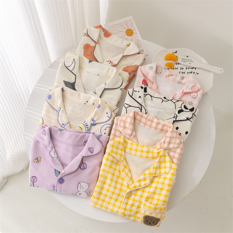 아기 만화 잠옷 잠옷 홈 옷깃 스타일 한국 스타일 어린이 긴 소매 카디건 세트스토어 가기