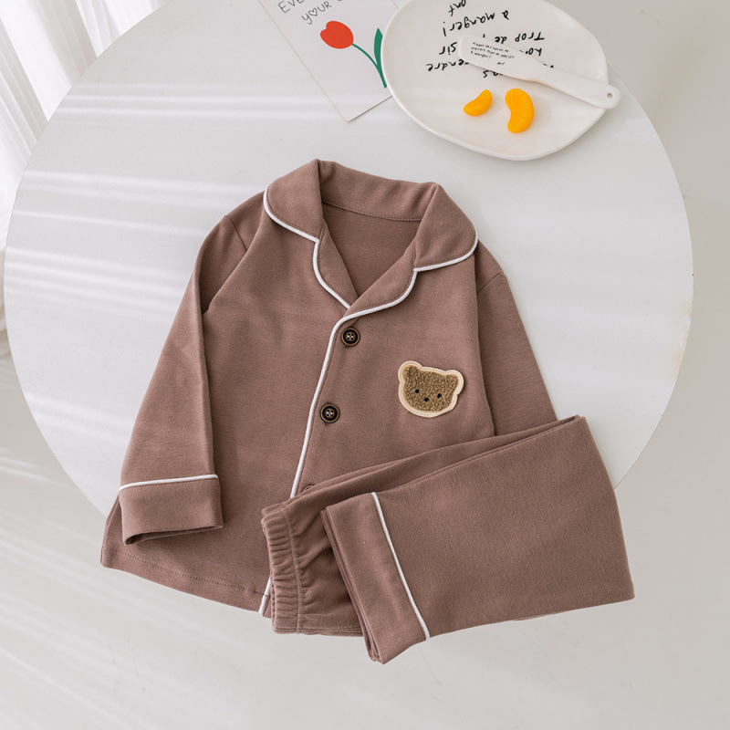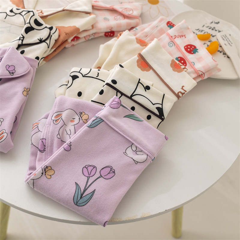 아기 만화 잠옷 잠옷 홈 옷깃 스타일 한국 스타일 어린이 긴 소매 카디건 세트