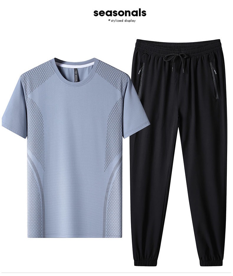 야외 아이스 티셔츠 남자 반팔 여름 최고 남자 아이스 실크 빠른 건조 느슨한 세트 등산 스포츠 레저