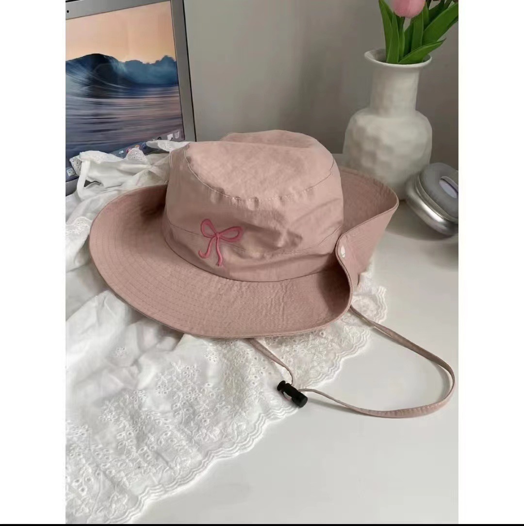 한국 귀여운 핑크 활 방풍 로프 빠른 건조 어부 모자 어린이 여름 야외 캠핑 등산 모자