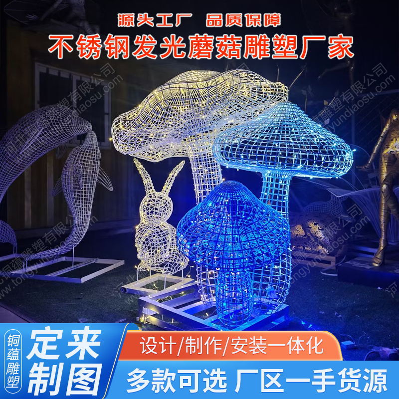 중공 철 빛나는 버섯 스테인리스 버섯 조각 푸시 카드 야외 잔디 동물 빛나는 바닥 장식품스토어 가기