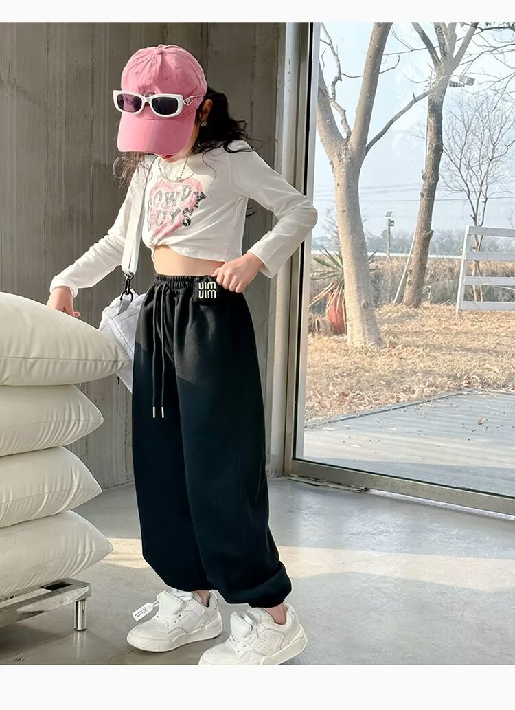 여자 한국 스포츠 바지 어린이 봄과 가을 캐주얼 바지 2025 새 봄 중대형 어린이 올매치 트렌디 바지