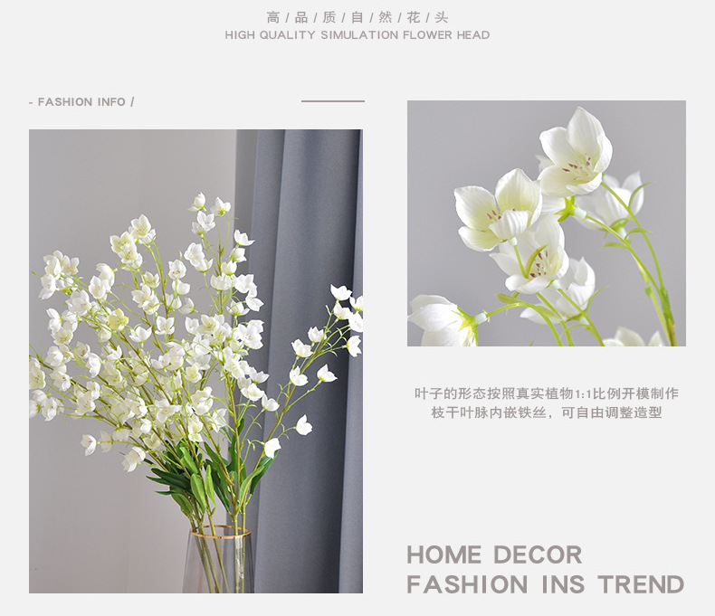 ✅백합 계곡 꽃 꽃 가짜 꽃 집 거실 바닥 장식 웨딩 가이드 꽃 아트 2 포크 긴 바람 종 꽃스토어 가기