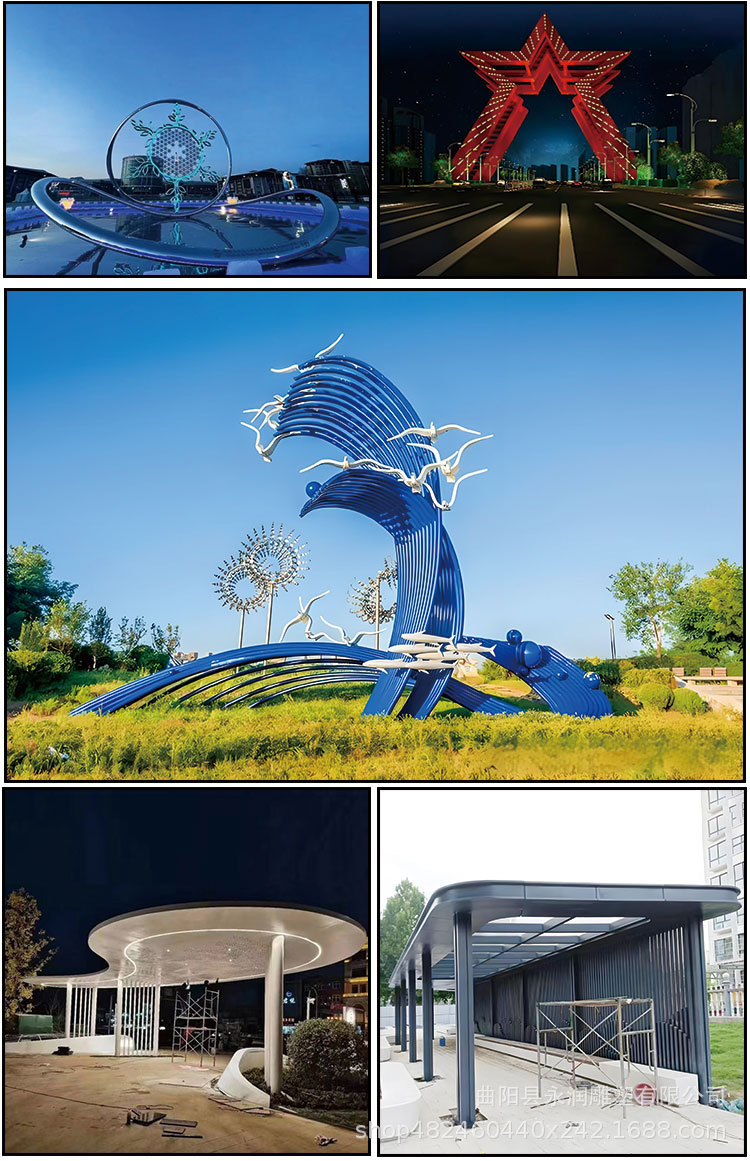 대형 스테인레스 스틸 복도 조각 커뮤니티 가든 스퀘어 파크 부동산 조경 금속 강철 구조 빛나는 장식품