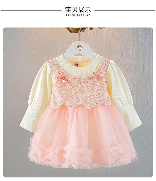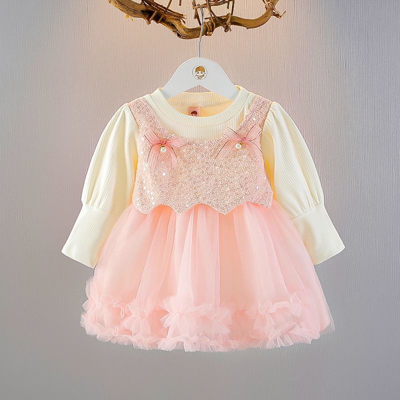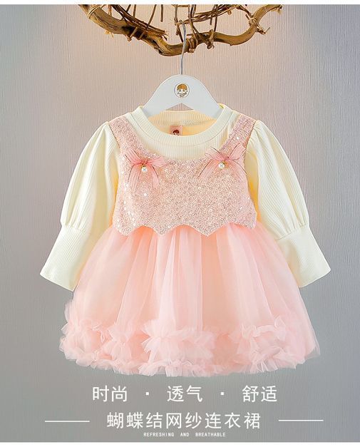 소녀 2025 봄 새로운 긴 소매 달콤한 베일 원피스 봄 원피스 아기 소녀 스타일 공주 원피스 작은 여자 원피스스토어 가기