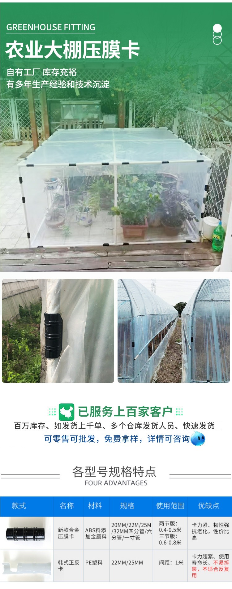 온실 액세서리 Daquan 프레스 필름 카드 고정 필름 카드 플라스틱 카드 필름 버클 야채 온실 필름 카드 스틸 파이프 버클스토어 가기