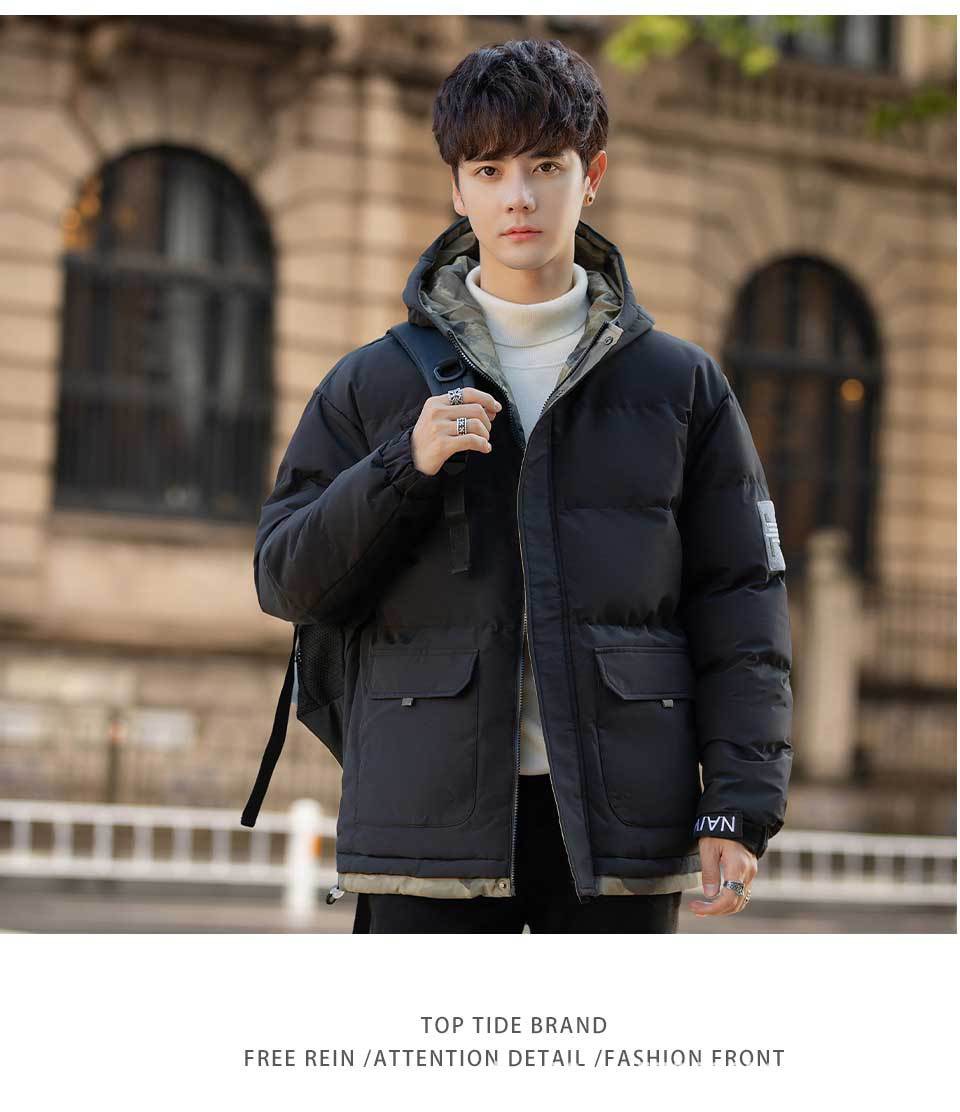 선정 된 소스 2023 새로운 오버올 남자 후드 코튼 패딩 재킷 남자 두꺼운 트렌디 남자 올 매치 탑 코튼 패딩 재킷 남자스토어 가기