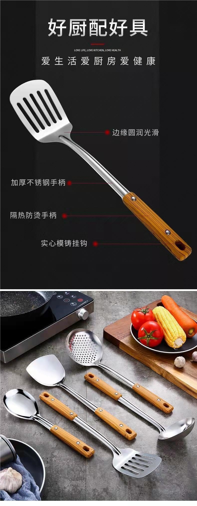 [48 시간 배달] 두꺼운 안티 scald 스테인레스 스틸 주걱 스푼 세트 볶음 삽 주걱 소쿠리 스푼 스푼스토어 가기