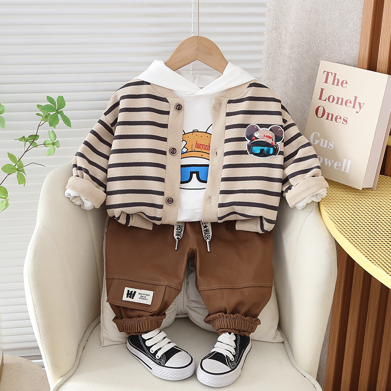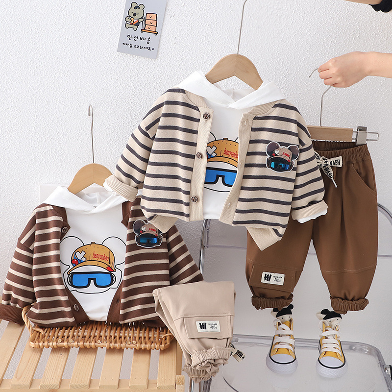 아이들의 캐주얼 패셔너블 카디건 재킷 아기의 캐주얼 스웨터 바지 3 피스 세트를 세트 소년 봄 옷스토어 가기