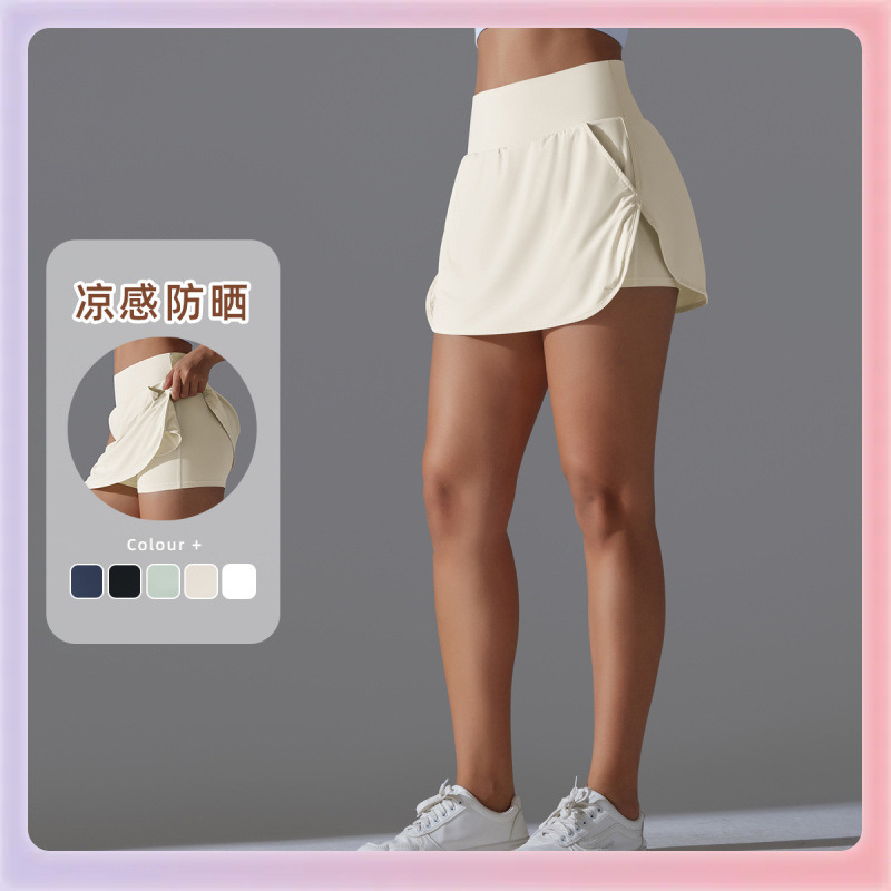 ✅새로운 가짜 투피스 내부 알몸 슬림 핏 슬리밍 포켓 테니스 스커트 쿨 선 스크린 요가 피트니스 스커트