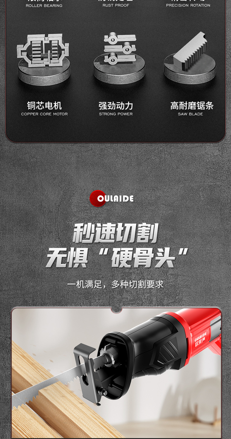 Oulade 전기 왕복 톱 세이버는 고출력 절단이 핸드 헬드 다기능 가정용 소형 전기 톱을 보았습니다.스토어 가기
