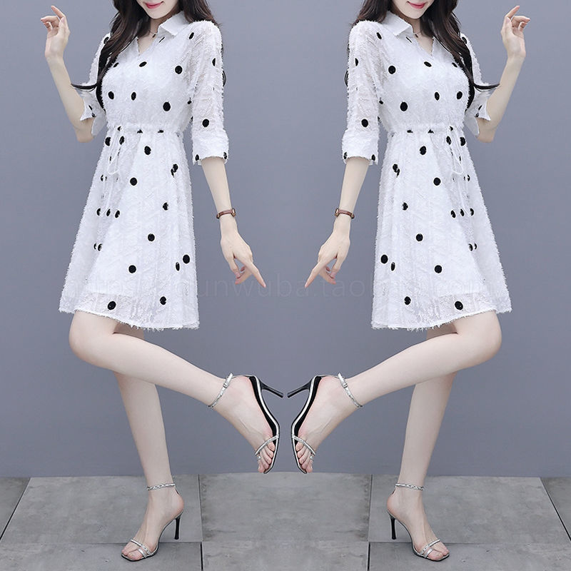 2021 새로운 여름 웨스턴 스타일 쉬폰 셔츠 원피스 여성용 슬림 핏 짧은 요정 치마스토어 가기