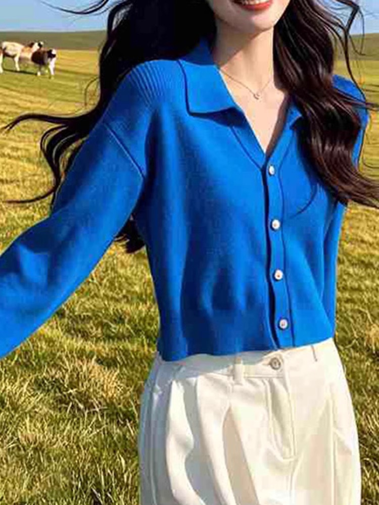 봄과 가을 프랑스 하이 엔드 디자인 센스 니쉬 폴로 칼라 스웨터 코트 여성용 긴팔 니트 카디건베이스 탑