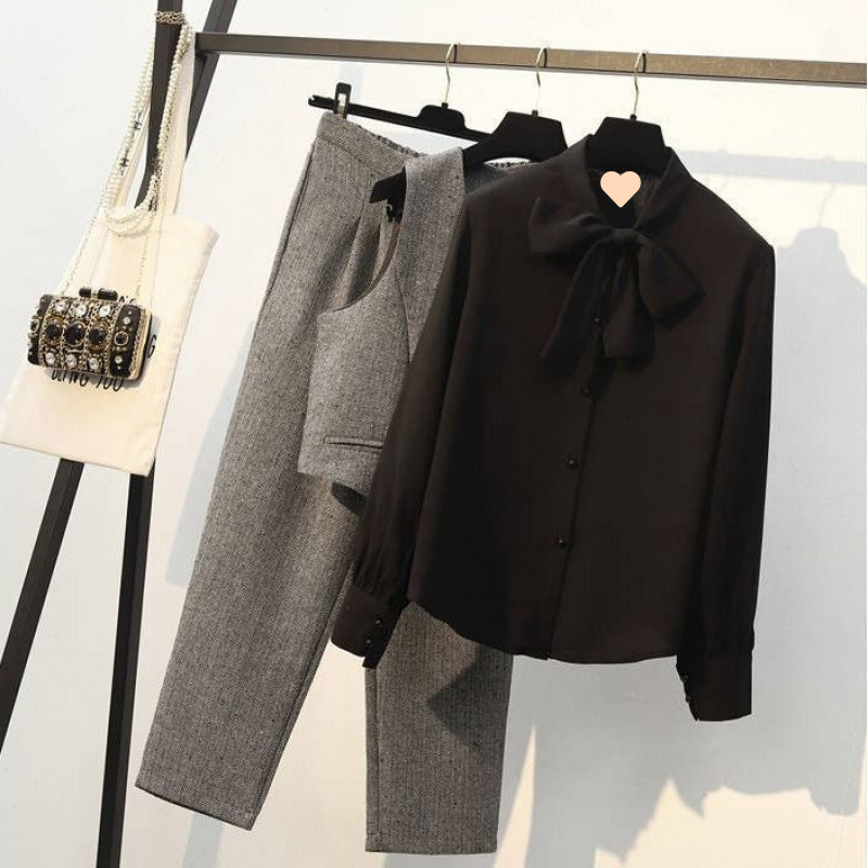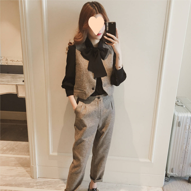 가을 세트 세트 3 종 세트 여성의 봄과 가을 새 스타일 긴팔 셔츠 조끼 송아지 9 점 바지 3 종 세트스토어 가기
