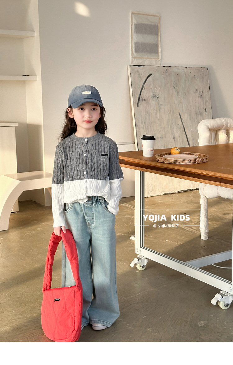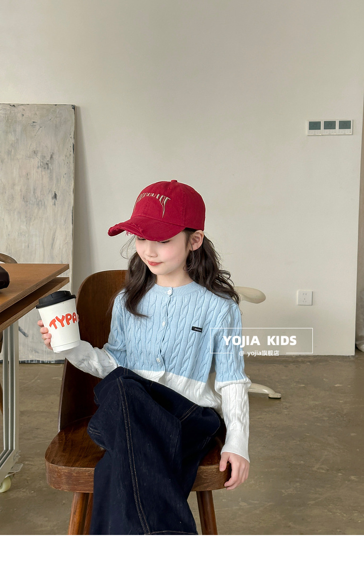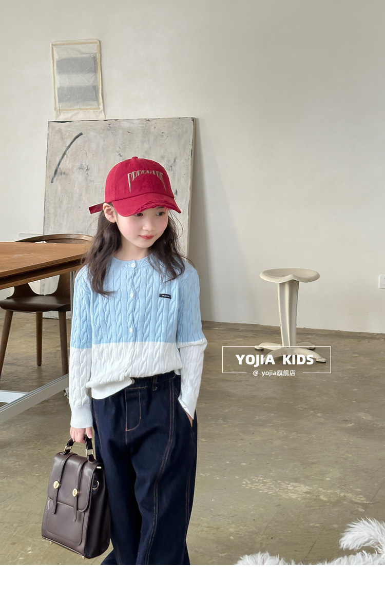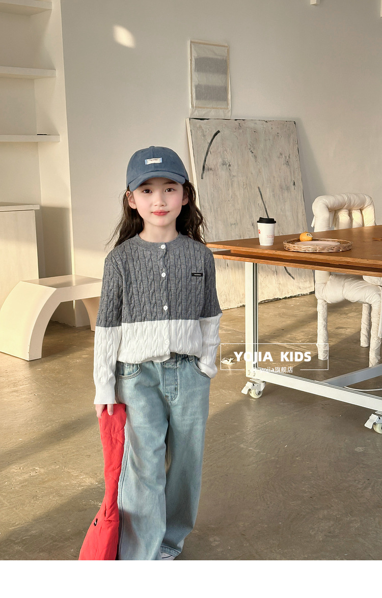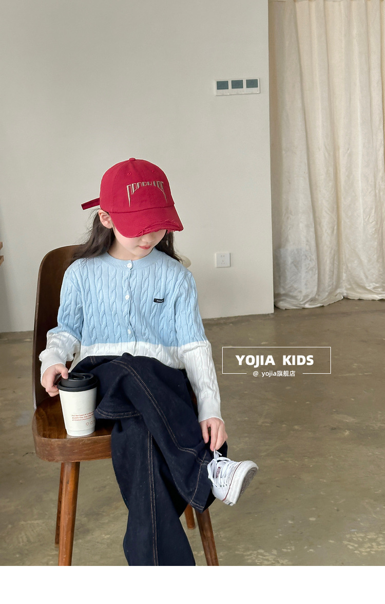 YOJIA 소녀들의 니트 카디건 봄과 가을 2025 새로운 스타일의 컬러 매칭 어린 소녀의 최고 어린이 스웨터 작은 셔츠스토어 가기
