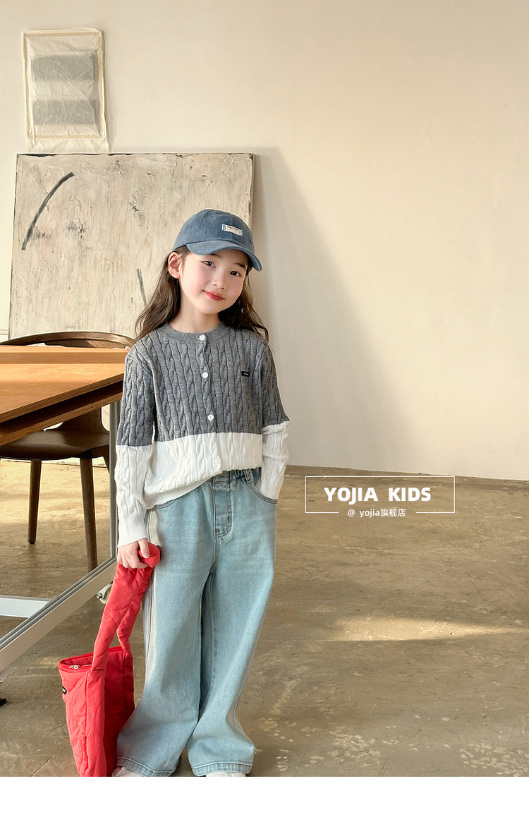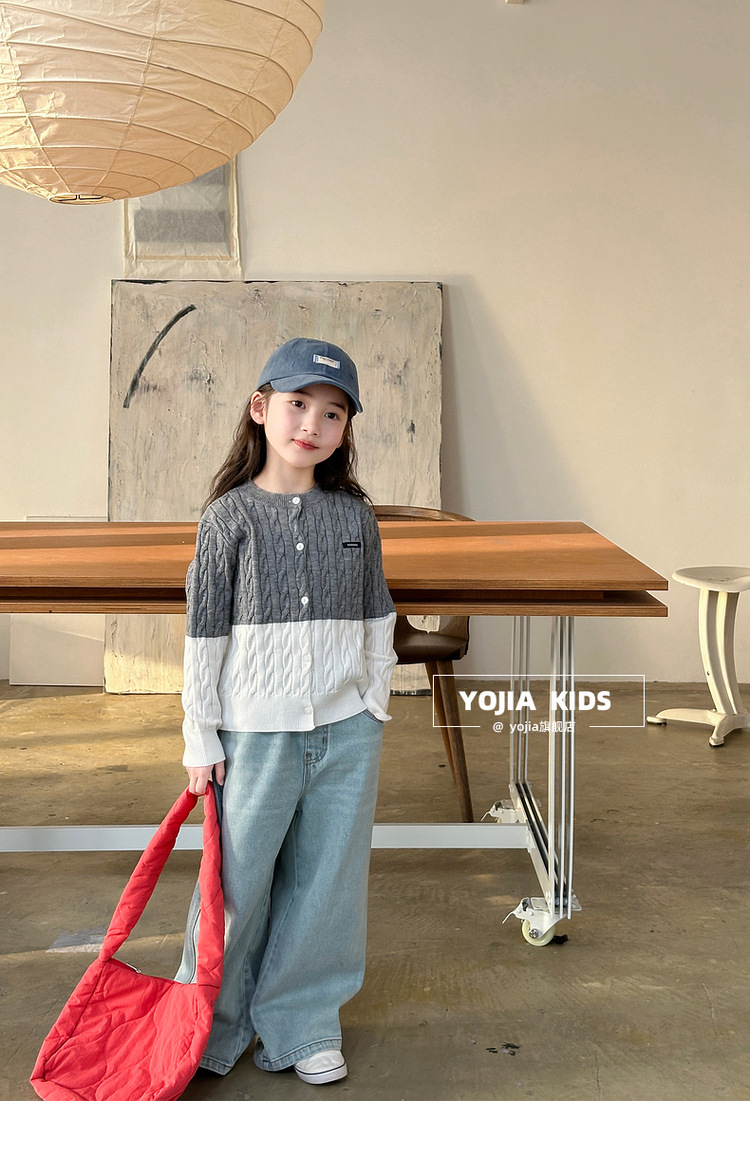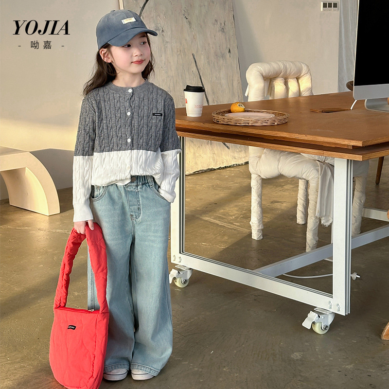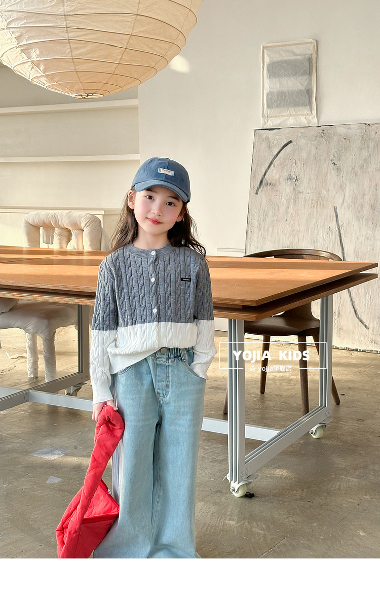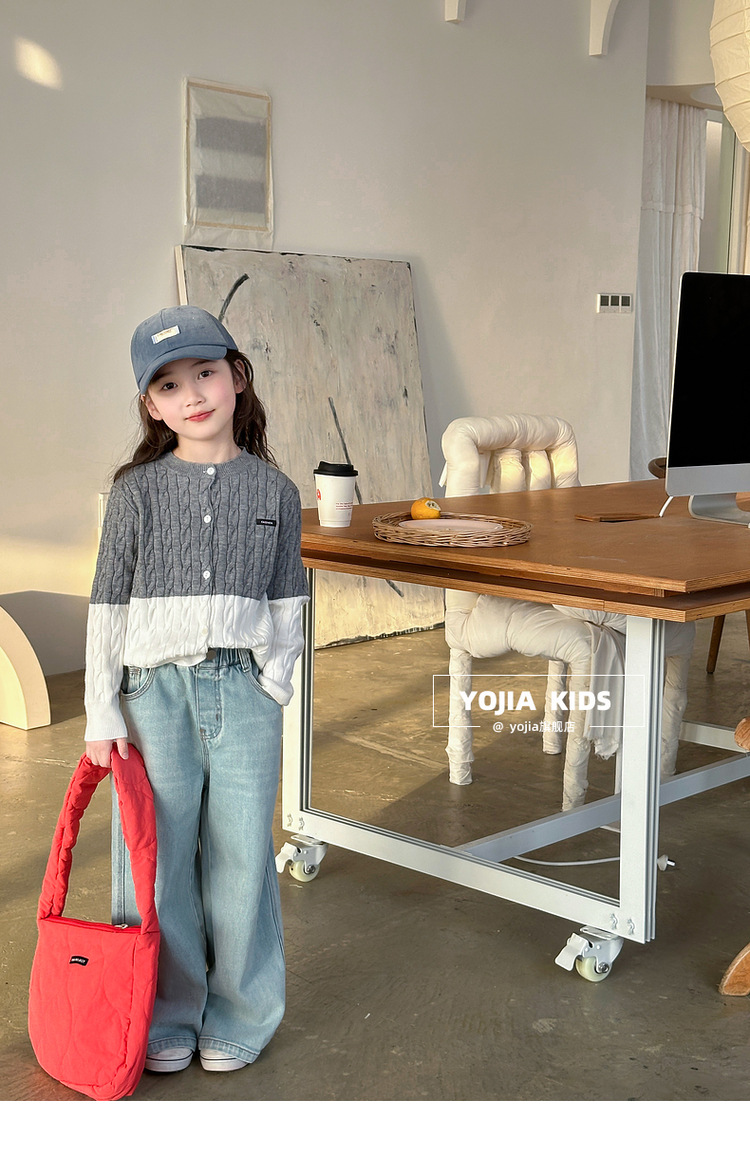 YOJIA 소녀들의 니트 카디건 봄과 가을 2025 새로운 스타일의 컬러 매칭 어린 소녀의 최고 어린이 스웨터 작은 셔츠스토어 가기