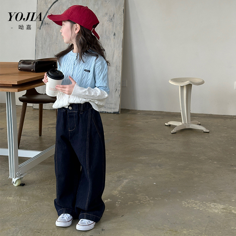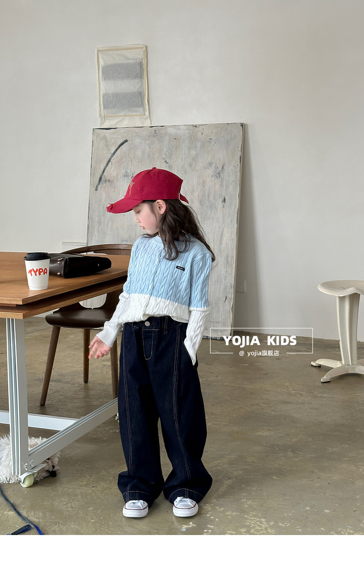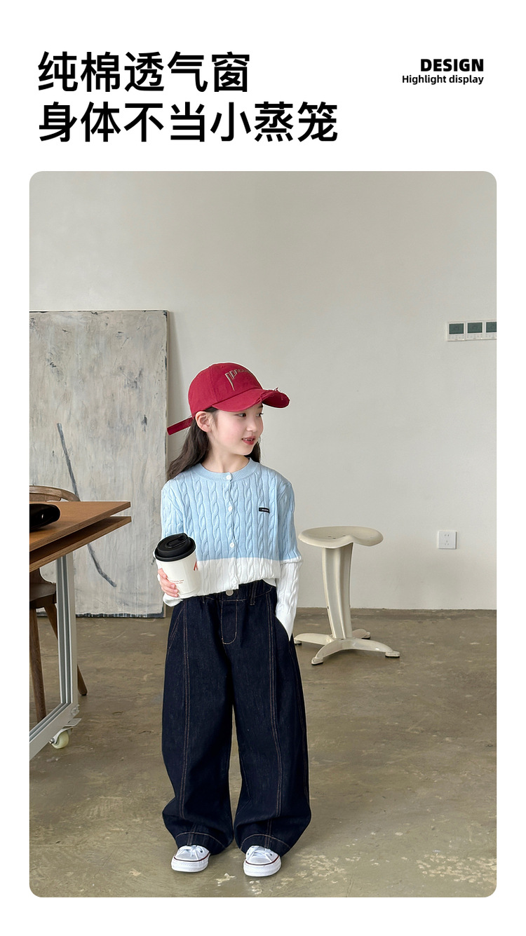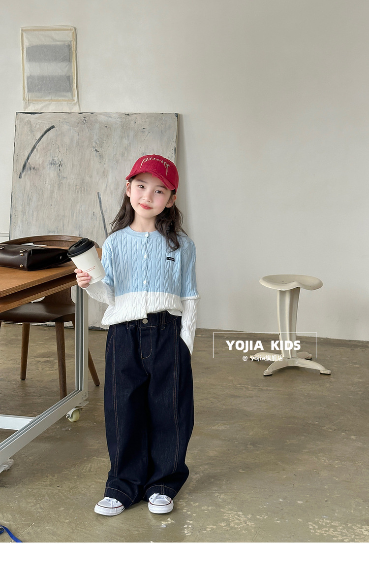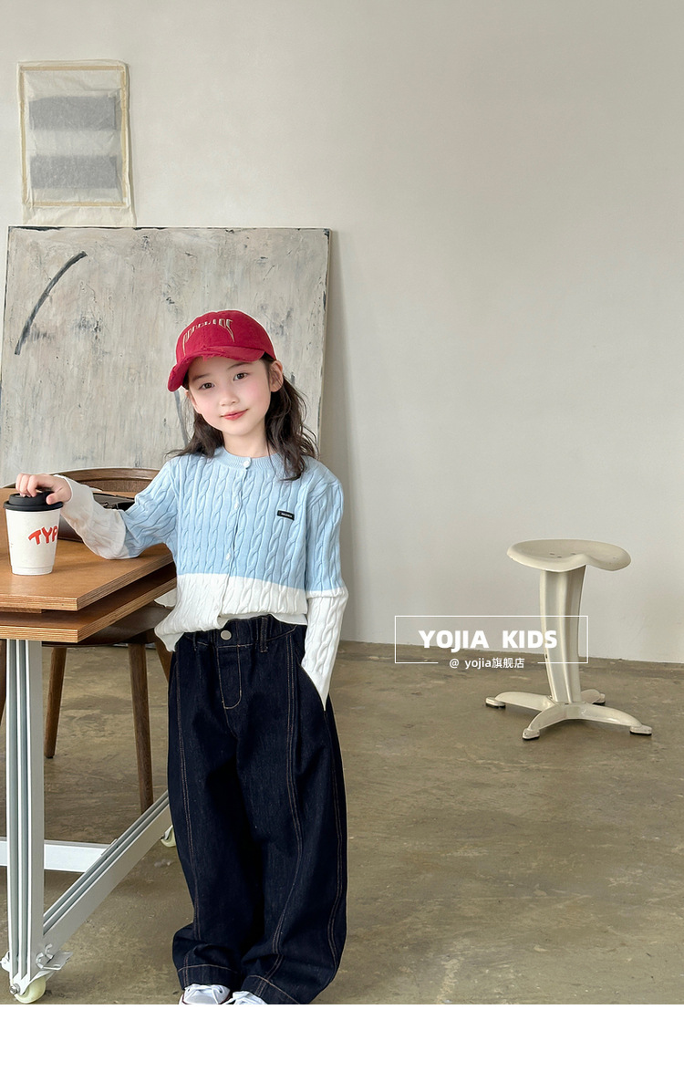 YOJIA 소녀들의 니트 카디건 봄과 가을 2025 새로운 스타일의 컬러 매칭 어린 소녀의 최고 어린이 스웨터 작은 셔츠스토어 가기