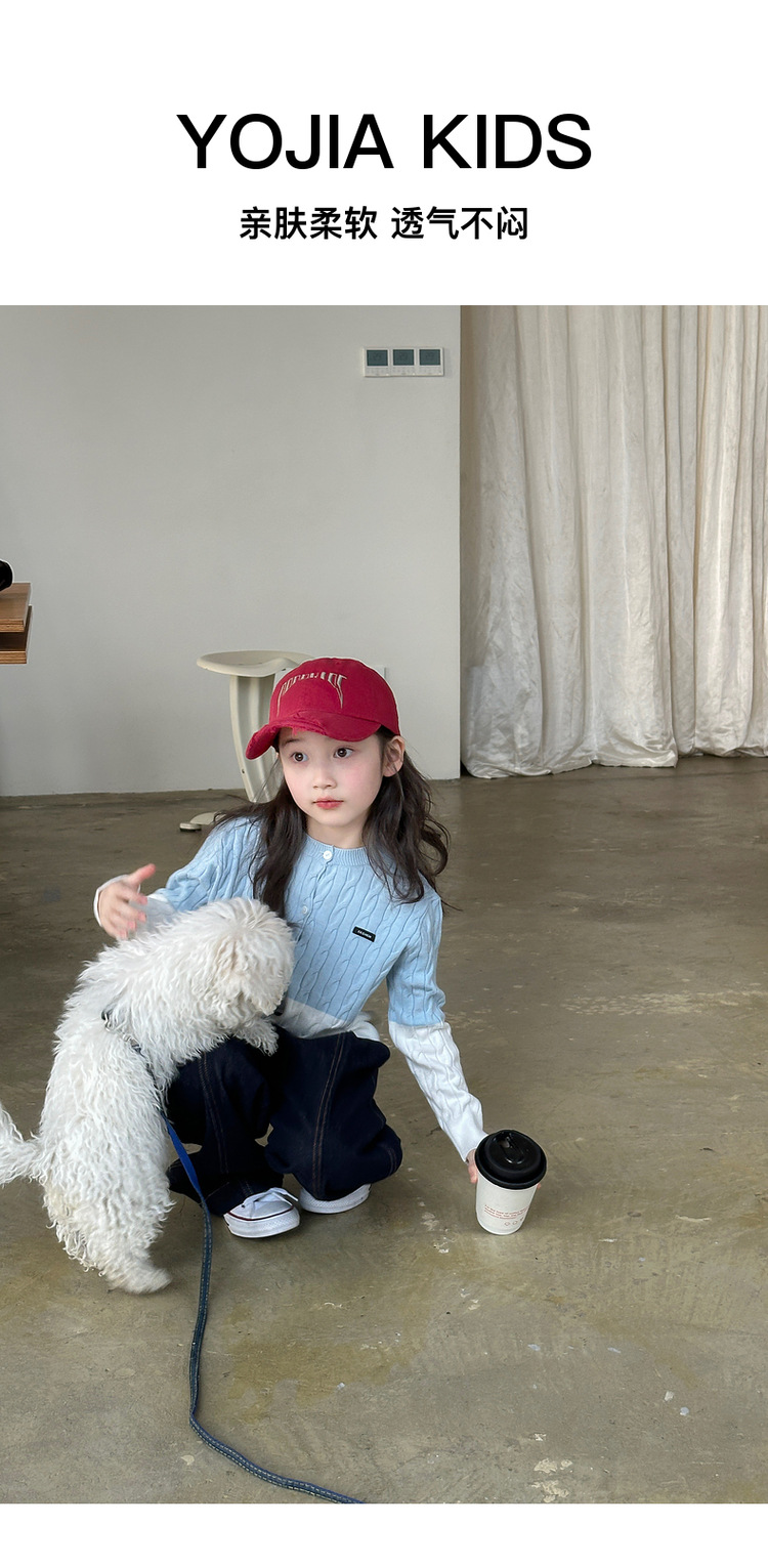 YOJIA 소녀들의 니트 카디건 봄과 가을 2025 새로운 스타일의 컬러 매칭 어린 소녀의 최고 어린이 스웨터 작은 셔츠