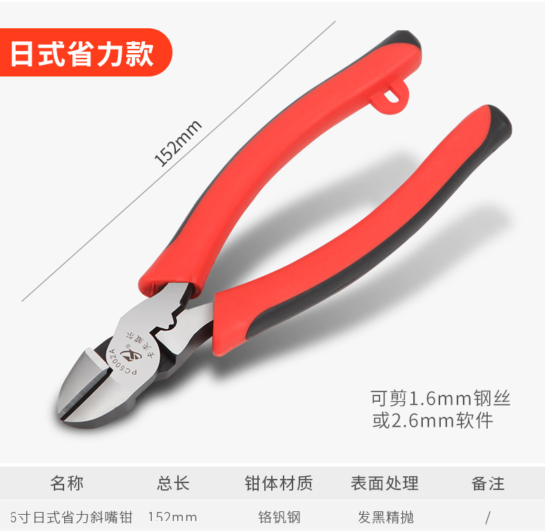 • 6inch겹 볼 노동력 절약형 대각선 노즈 플라이어 PC4206A