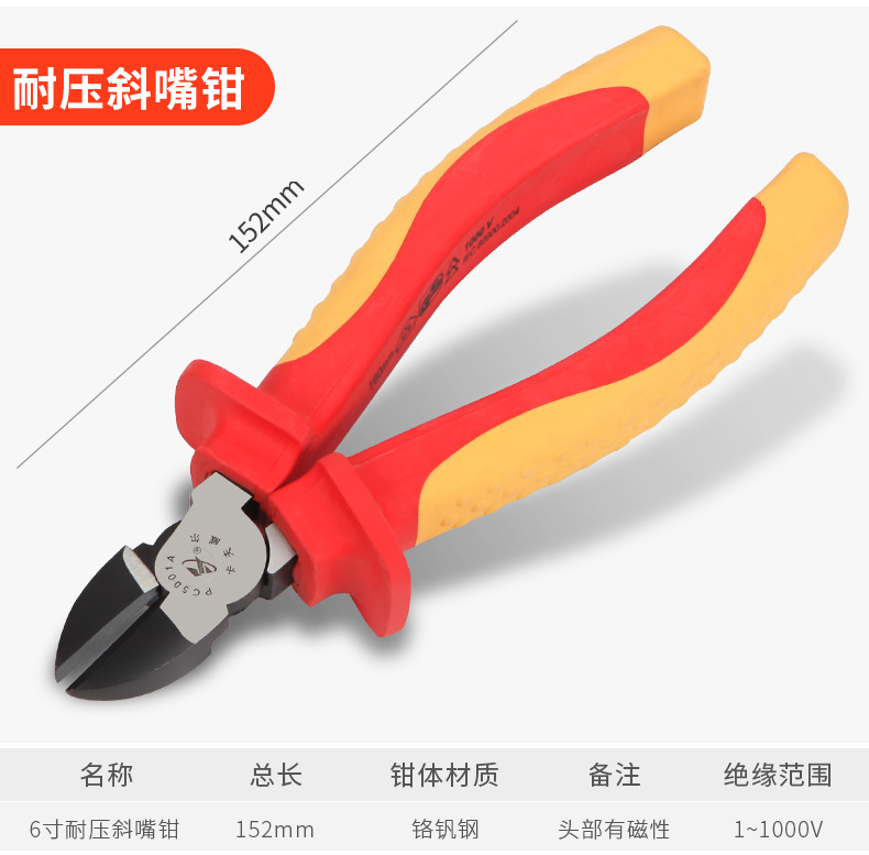 Cafvel Oblique Nose Pliers Oblique Mouth Pliers Oblique Mouth Pliers 부분 입 Vise 커팅 라인 플랫 입 산업 등급 워터 마우스 플라이어스토어 가기