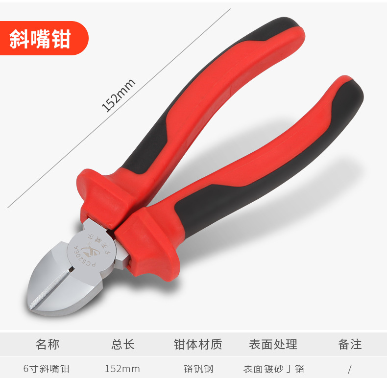 Cafvel Oblique Nose Pliers Oblique Mouth Pliers Oblique Mouth Pliers 부분 입 Vise 커팅 라인 플랫 입 산업 등급 워터 마우스 플라이어