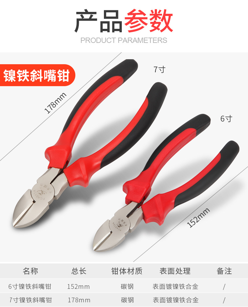 • : 6inch 니켈 철 대각선 노즈 플라이어 PC4010A