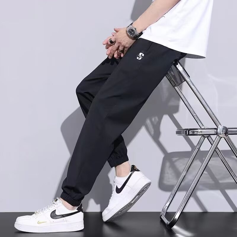 올매치 캐주얼 바지 쿨 센스 남성 경량 바지 느슨한 여름 캐주얼 바지 아이스 실크 바지 패션 심플 스타일