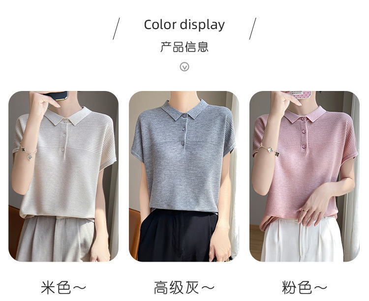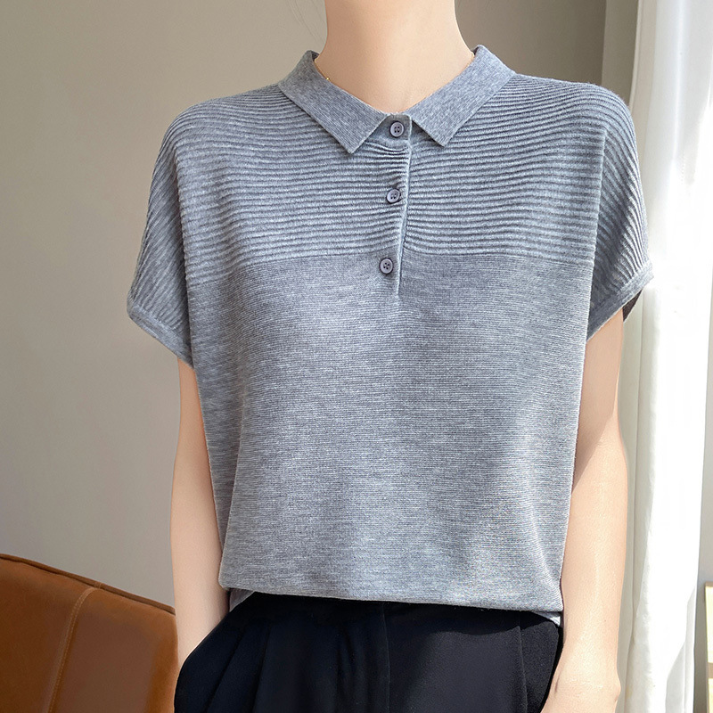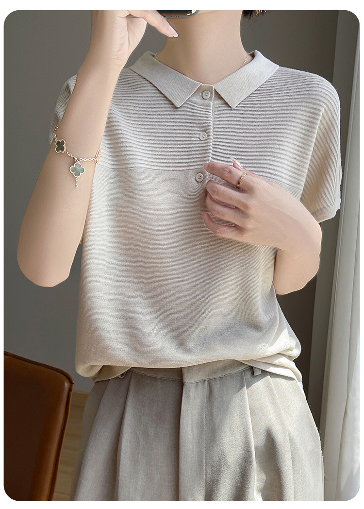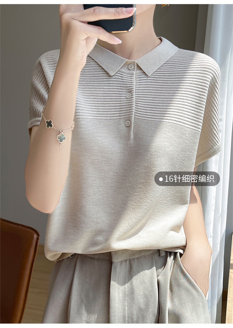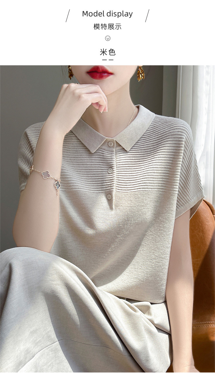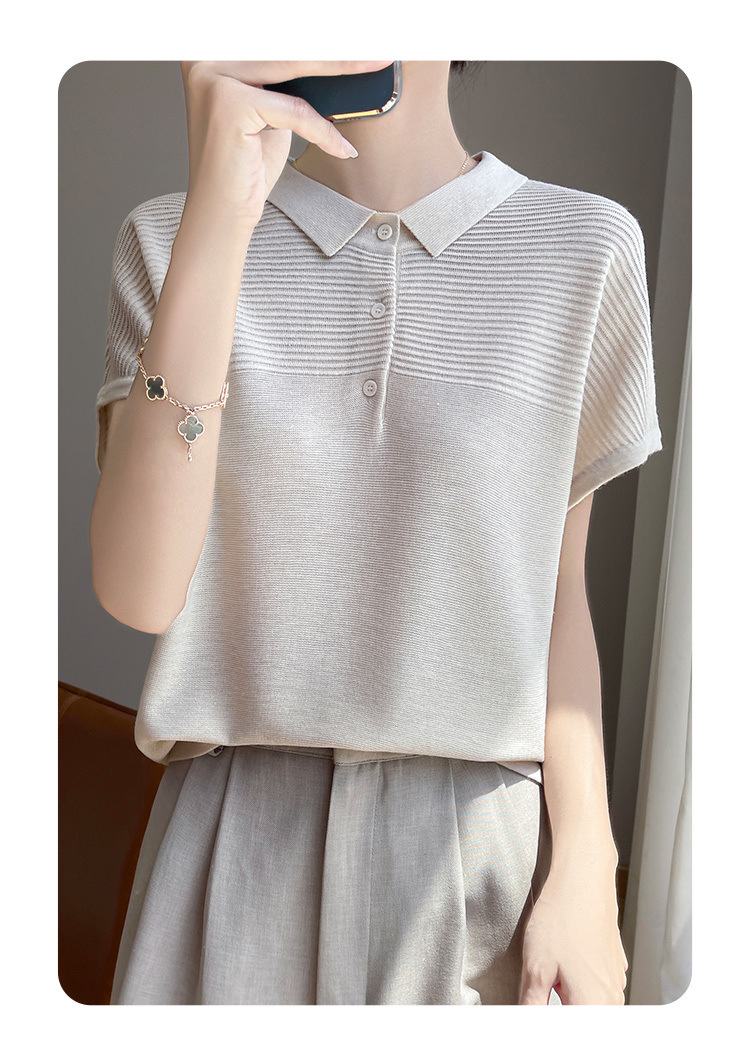 100 텐셀 니트 반팔 티셔츠 여성용 여름 뉴 멀 베리 실크 우아한 루즈 셔츠 칼라 탑 크로스스토어 가기