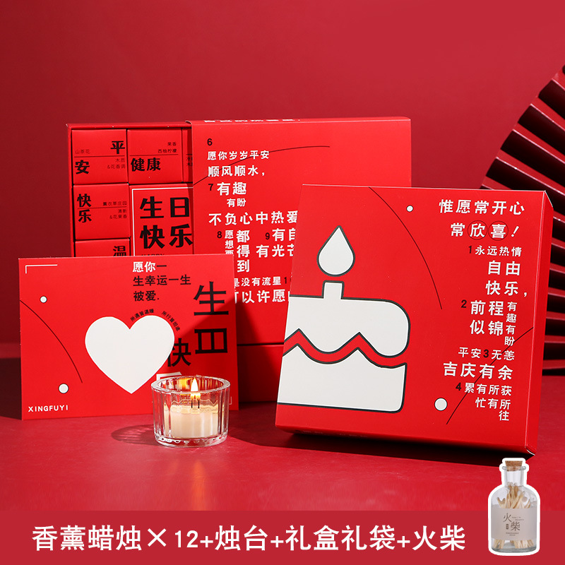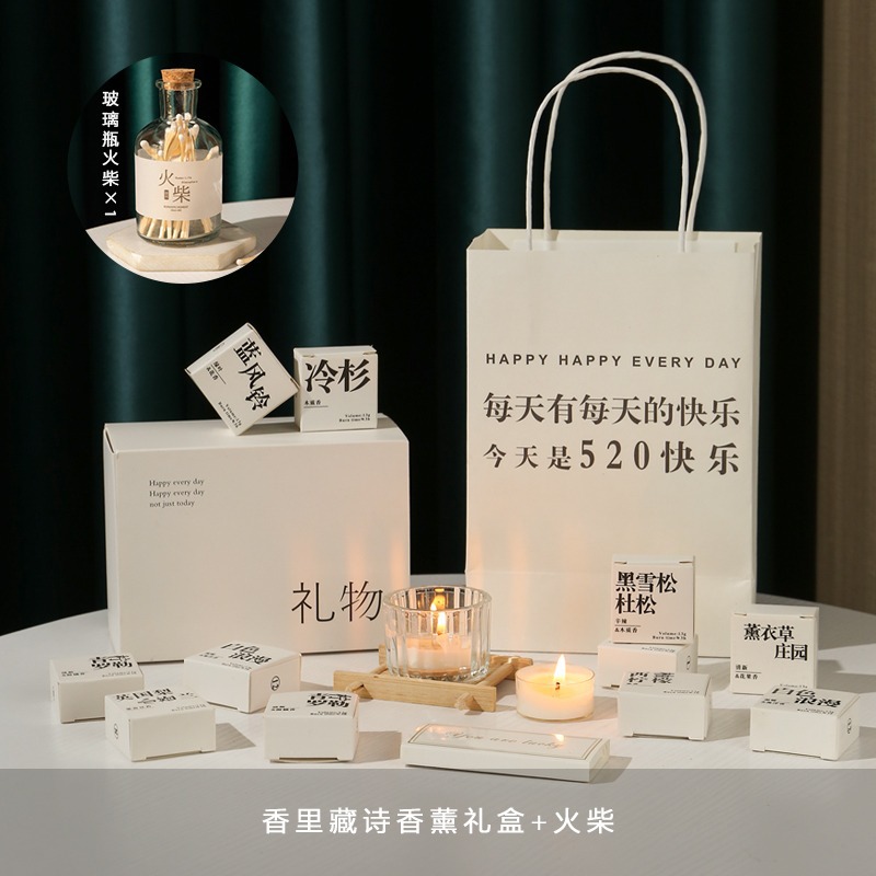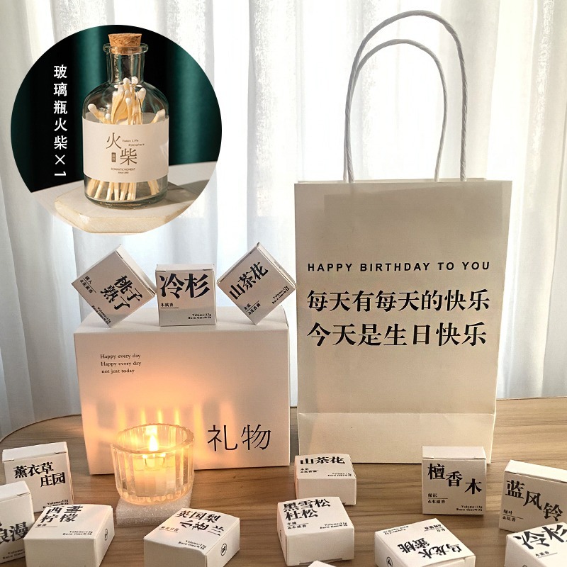 • 병매치 + [생일 스타일] 향이 숨은 시 선물 상자 (12개/촛대 포함)