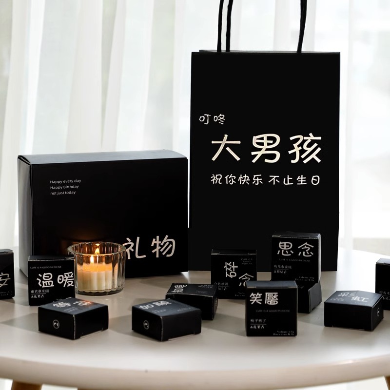 • 병매치 + [남자아이 생일 스타일] 향이 숨은 시 선물상자 (12개/촛대 포함)