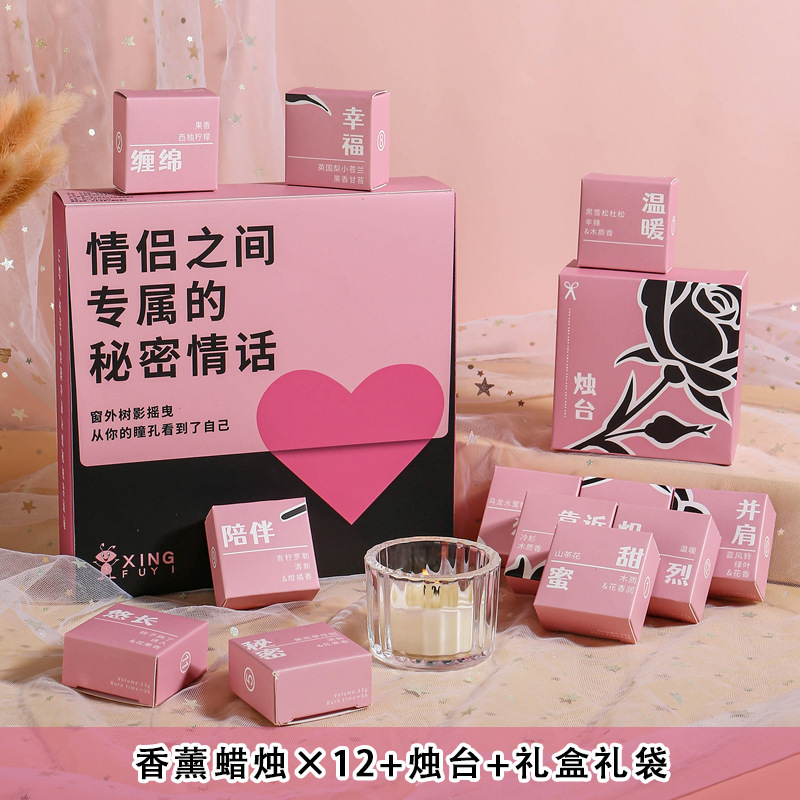 • 병매치 + [해피 중국 발렌타인데이] 향이 숨은 시 선물 상자 (12개/촛대 포함)