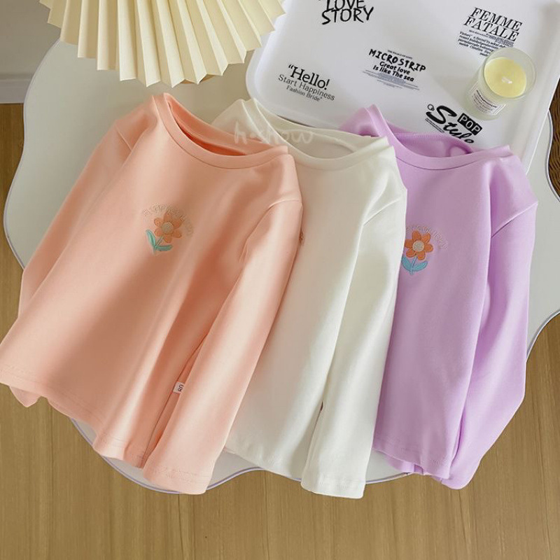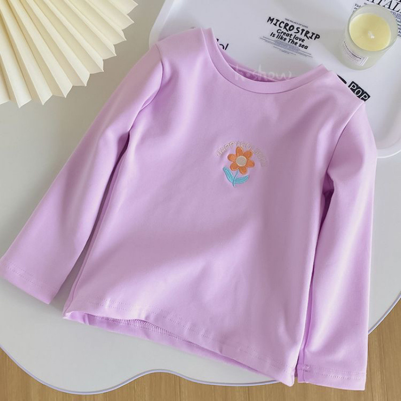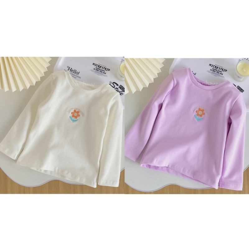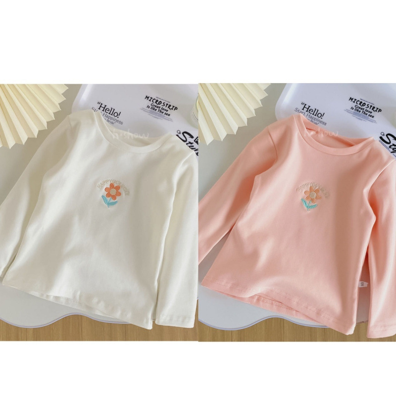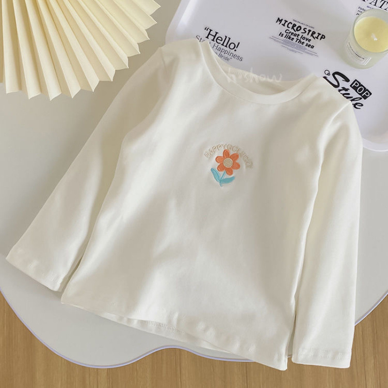 서양식 소녀의베이스 셔츠 봄과 가을 2024 아기 자수 긴 소매 T 어린이 최고 신선한 스타일 여성