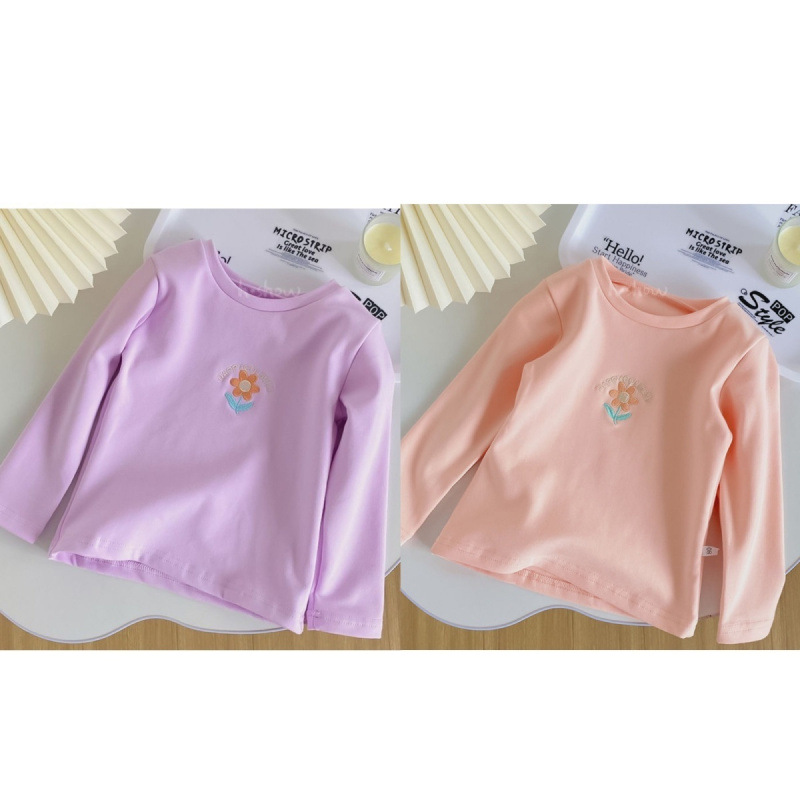서양식 소녀의베이스 셔츠 봄과 가을 2024 아기 자수 긴 소매 T 어린이 최고 신선한 스타일 여성스토어 가기