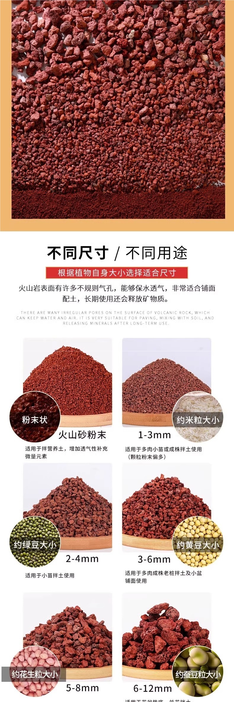 자연 화산 돌 입자 붉은 화산 바위 바닥 모래 다육 난초 돌 특수 영양 토양 필터 재료 포장 돌 어항