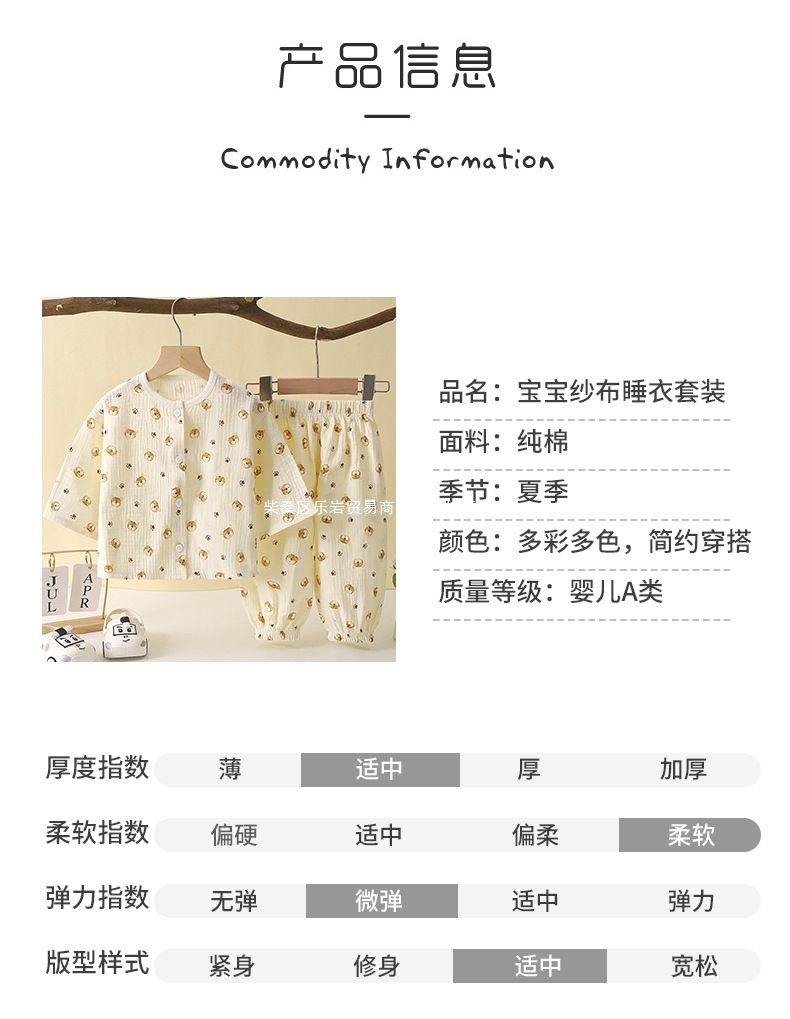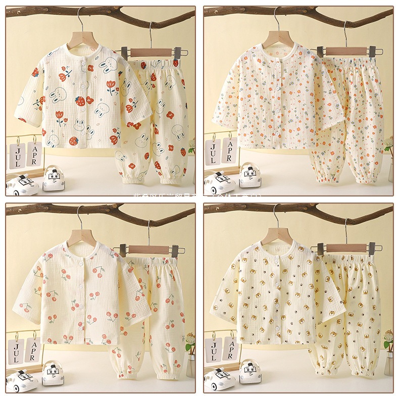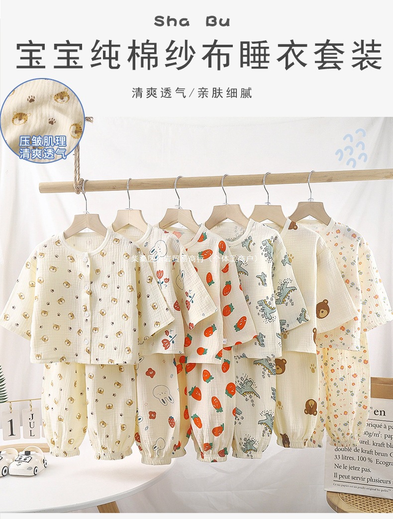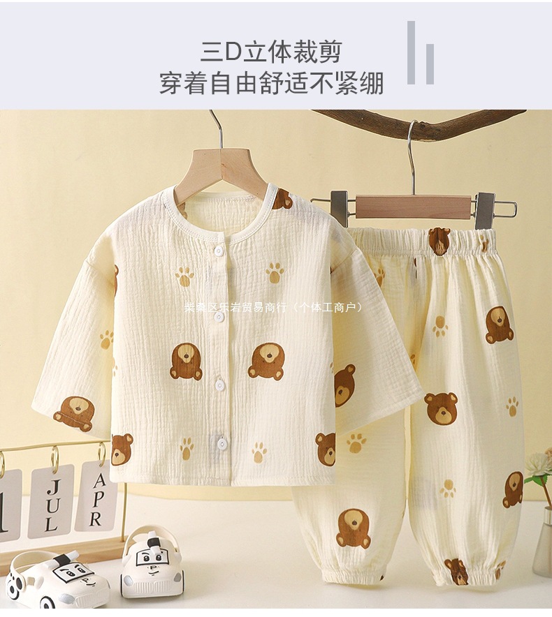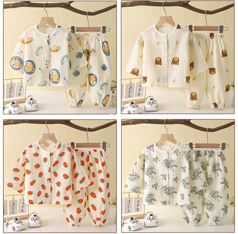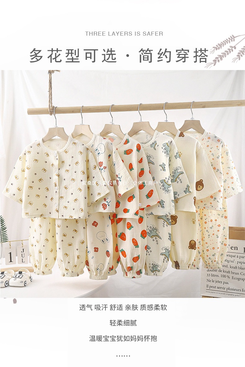 어린이 얇은 더블 레이어 코튼 거즈 소년 잠옷 여름 소녀의 집 옷 소년 아기 긴 소매 블루머 도매스토어 가기