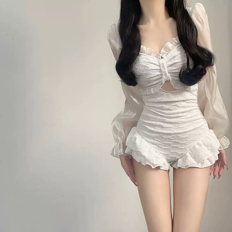 순수한 욕망 바람에 뜨거운 봄 수영복 여성 하이 엔드 긴팔 보수 2025 새로운 스타일 작은 가슴 수집 약간의 뚱뚱한 소녀의 슬리밍스토어 가기