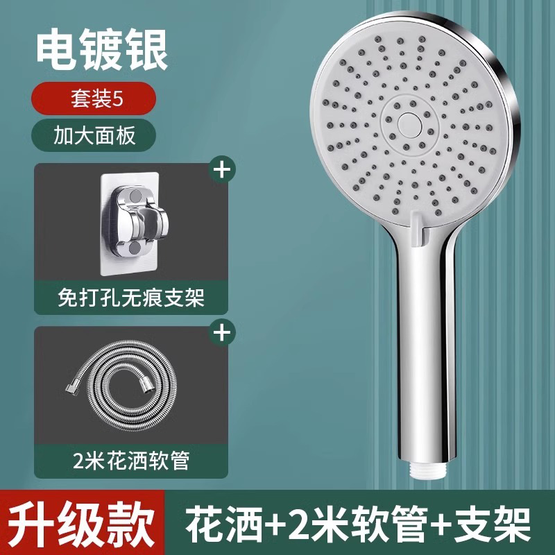 • [실버세트5] 5단 슈퍼차저 샤워기 + 방폭, 누수방지 호스 2m개 + 브라켓