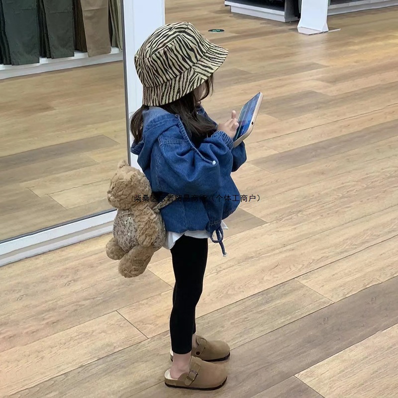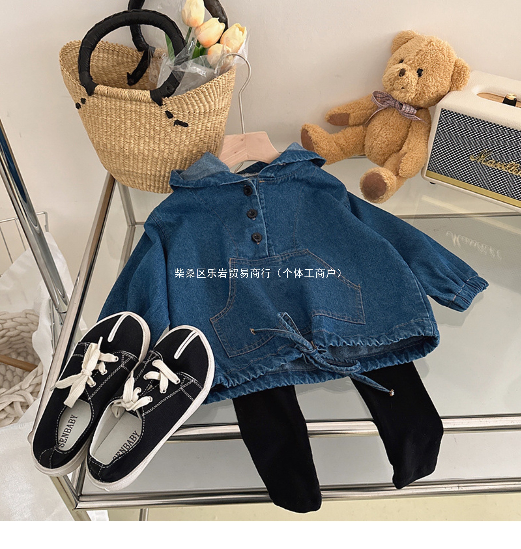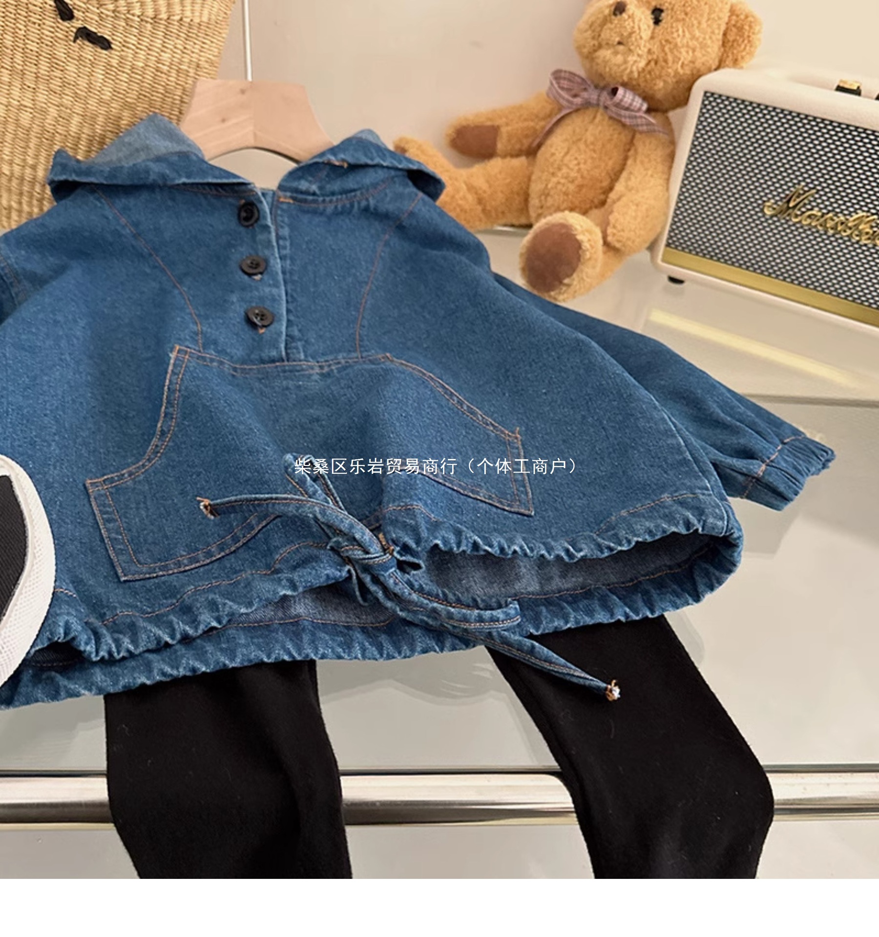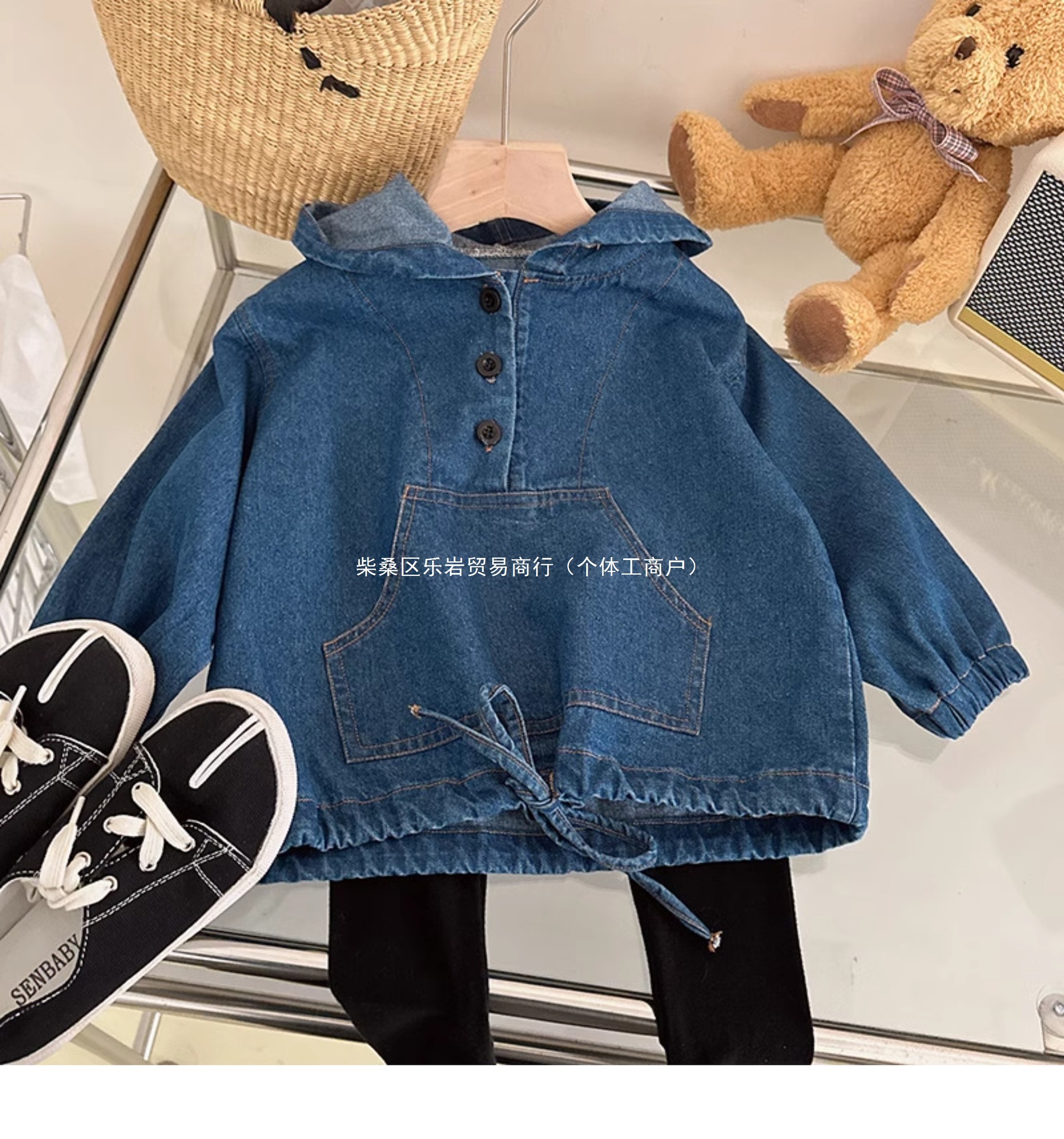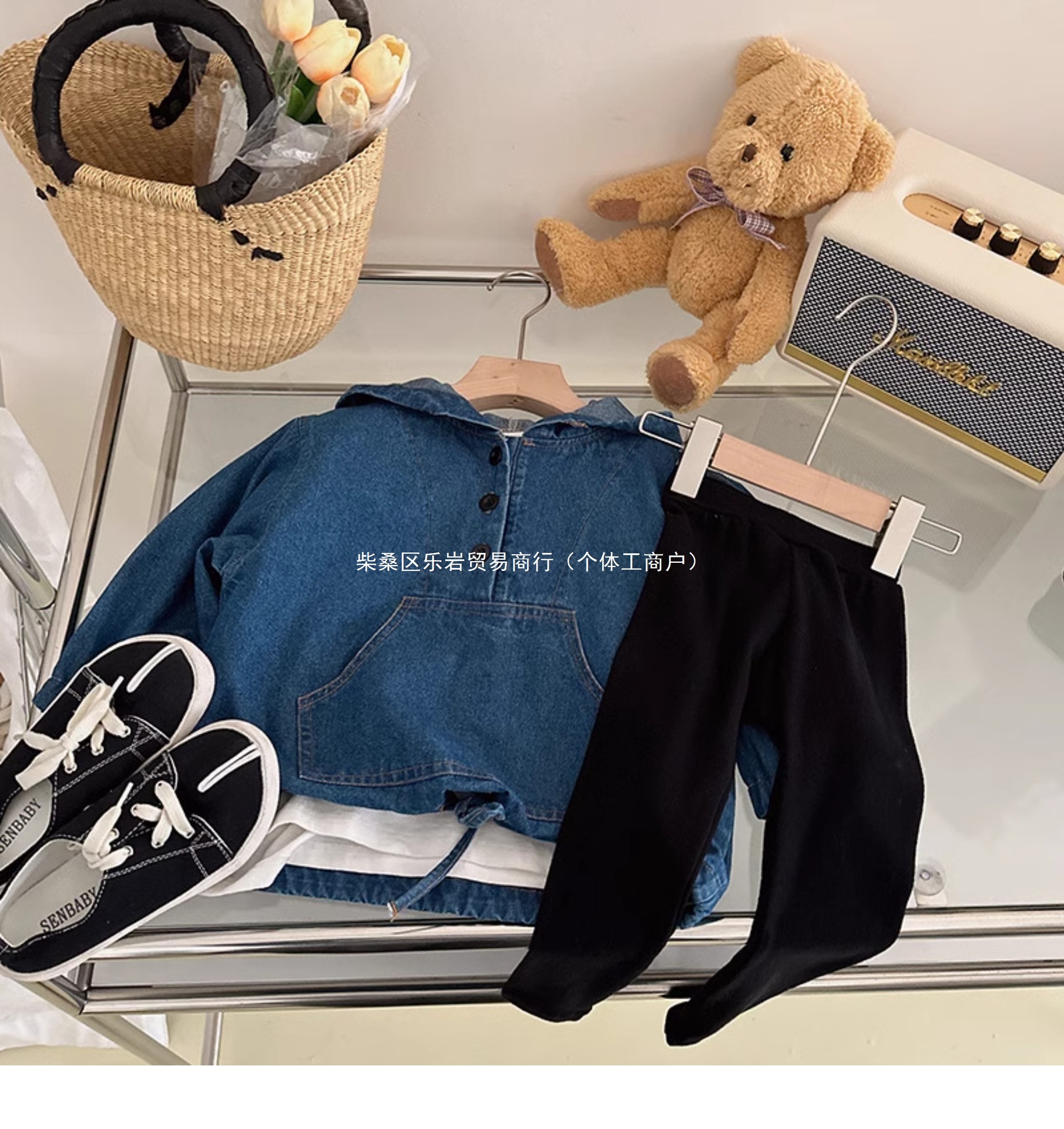 여자 외국 스타일의 후드 데님 코트 세트 2025 봄 스웨터 베이비 코트 티셔츠베이스 셔츠 3 도매스토어 가기
