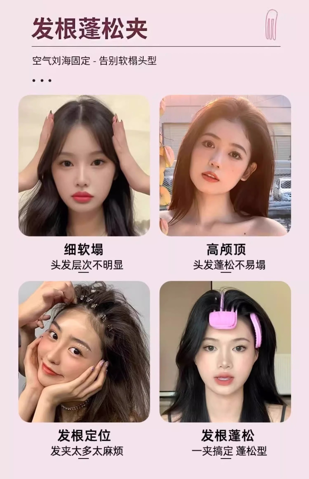 고르고한 머리카락을 위한 스타일링 빗, 2024년 새로운 스타일의 푹신한 뿌리와 이마 앞머리 스타일링 도구, 게으른 사람들을 위한 흔적 없는 머리핀