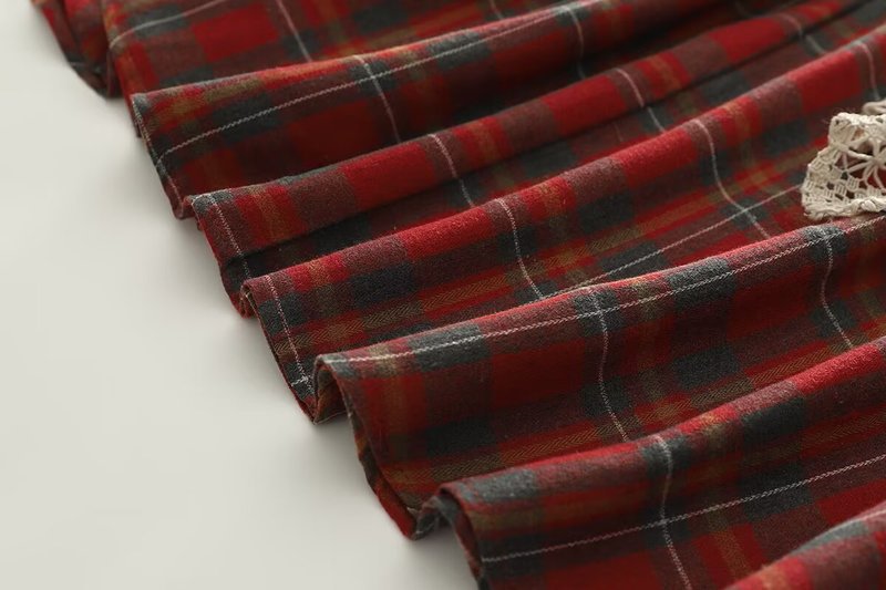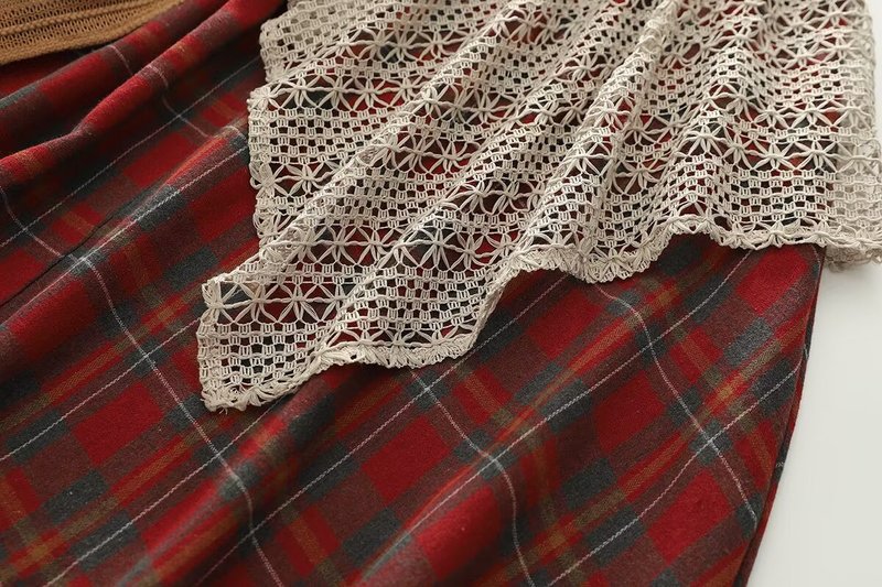한국 스타일 새로운 격자 무늬 레이스 바느질 느슨한 큰 허리 여성 치마