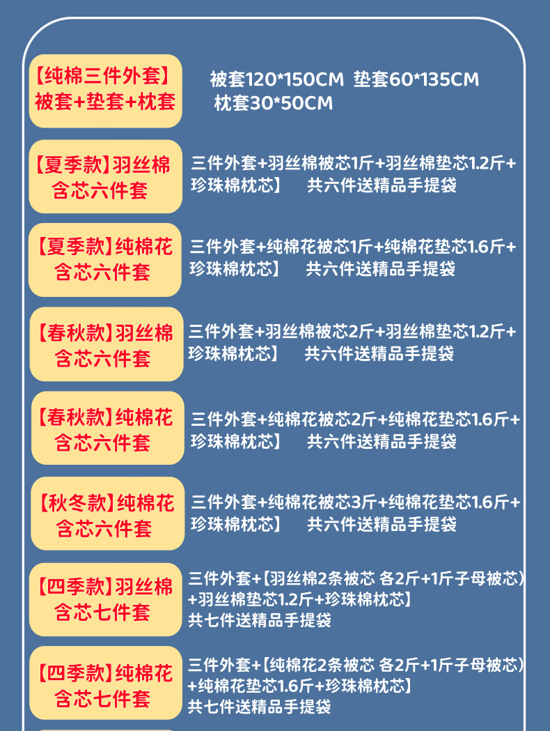 • 깃털 실크면 6종 세트(이불심 1개 + 쿠션심 1개 + 베개심 1개)