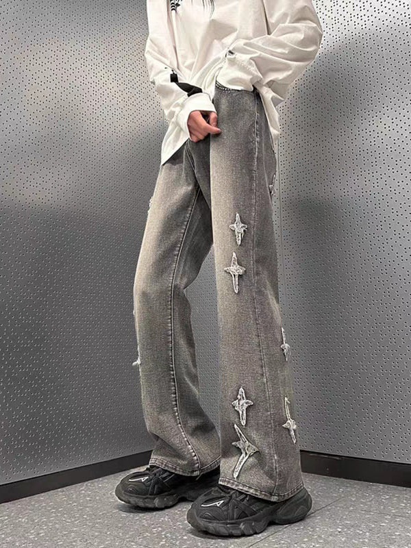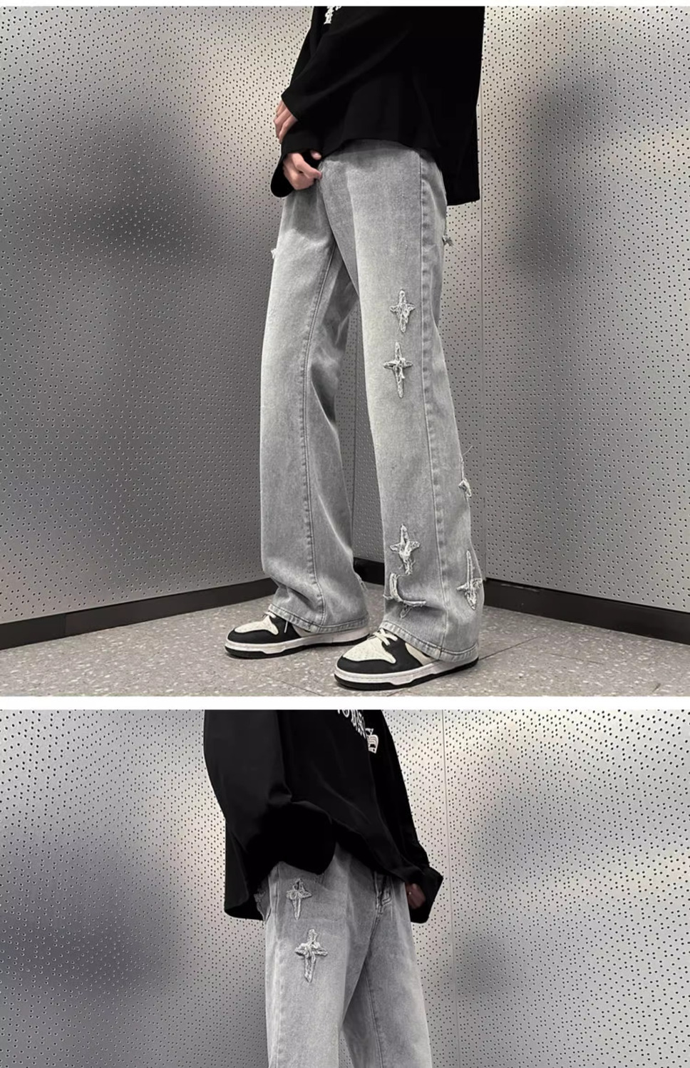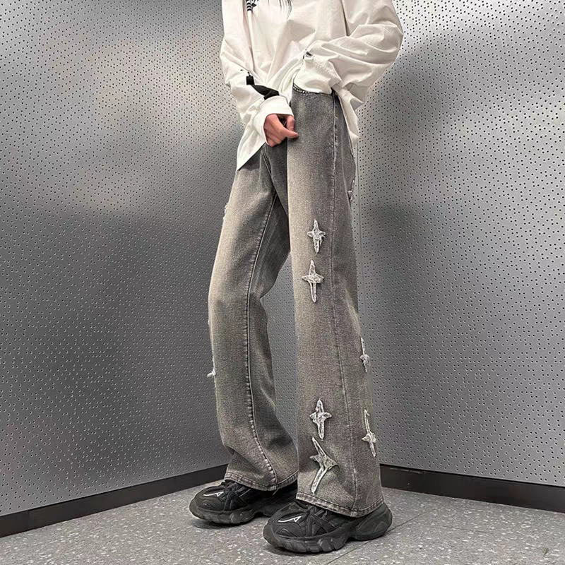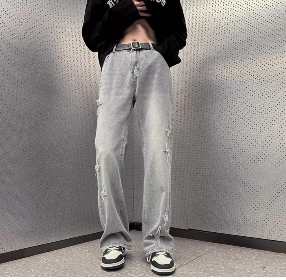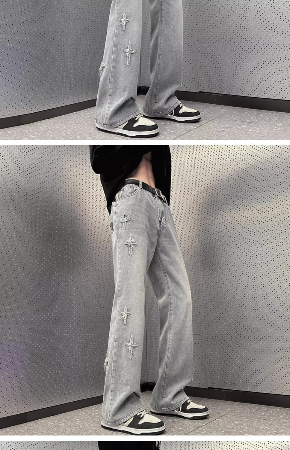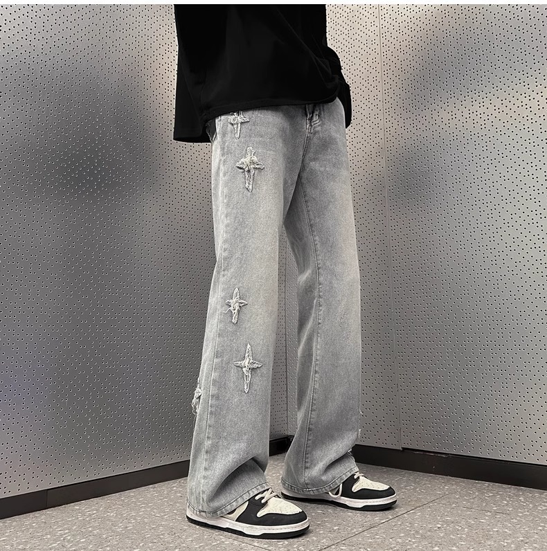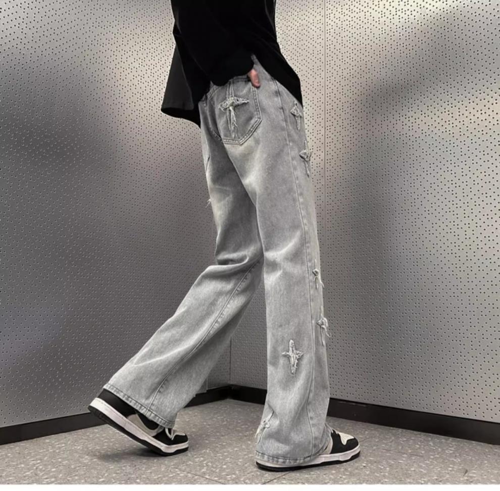 유럽과 미국의 하이 스트리트 분위기 바지 2025 봄과 가을 새로운 패션 브랜드 hiphop 크로스 스트레이트 바지 청바지 남성스토어 가기