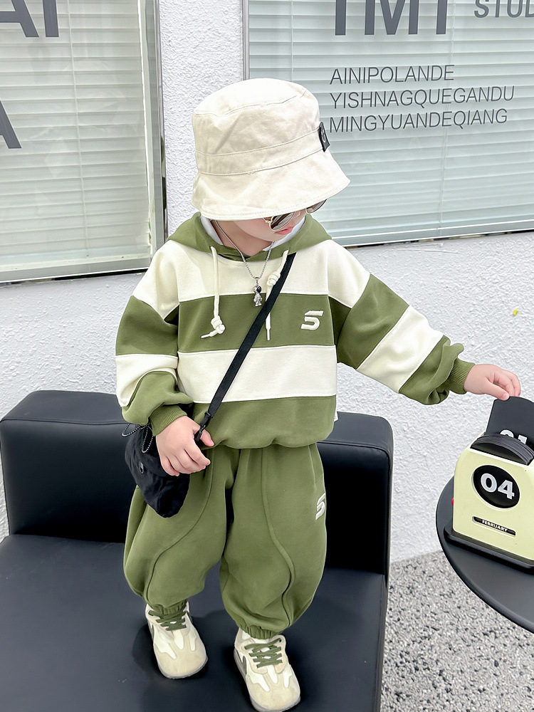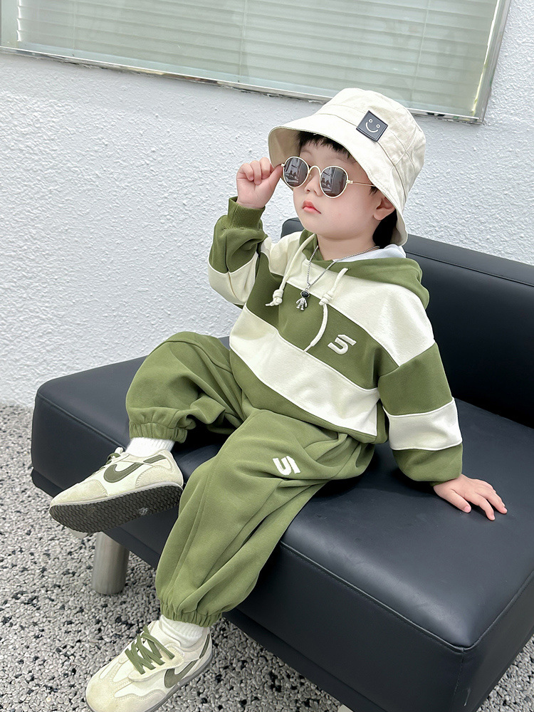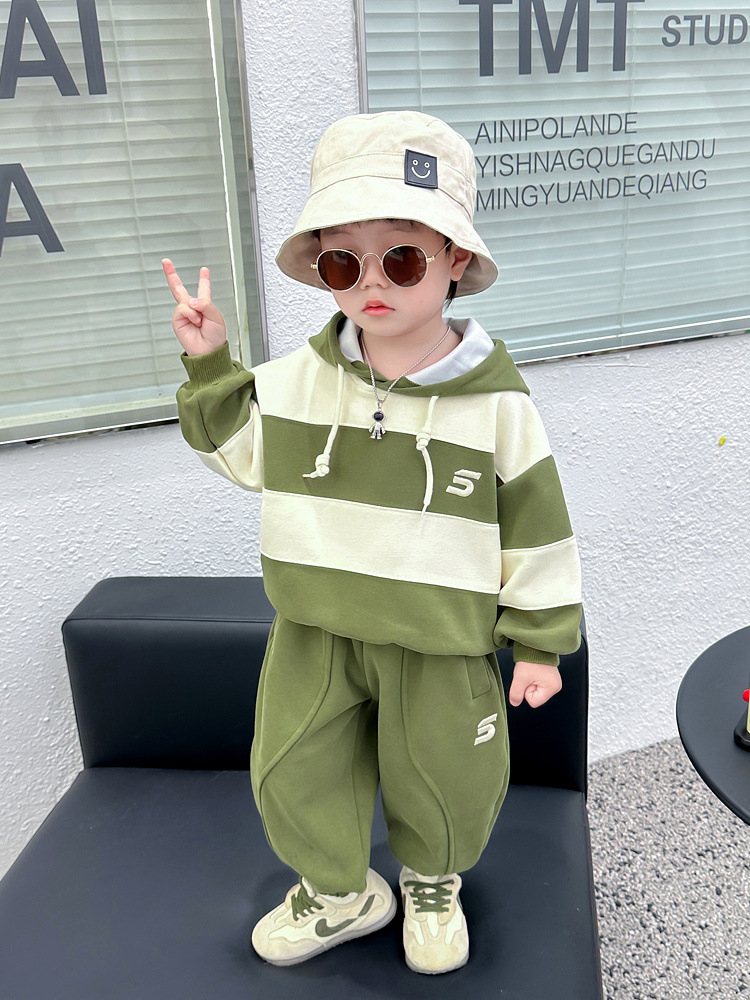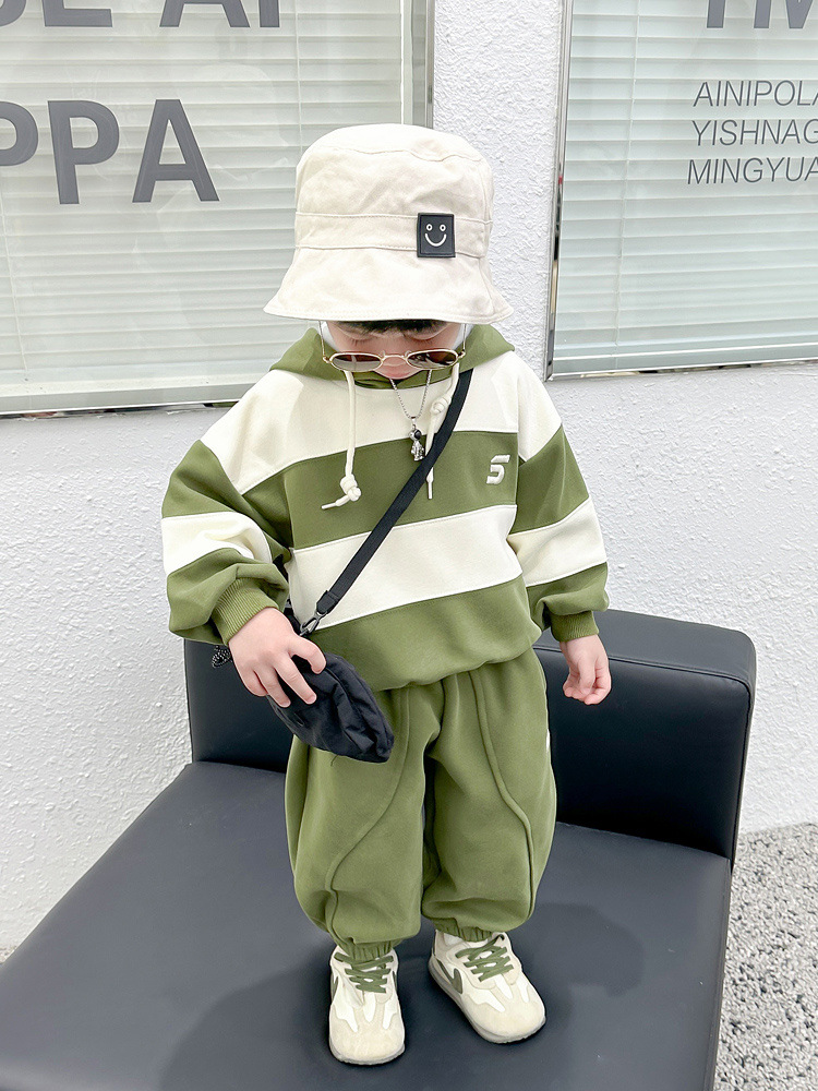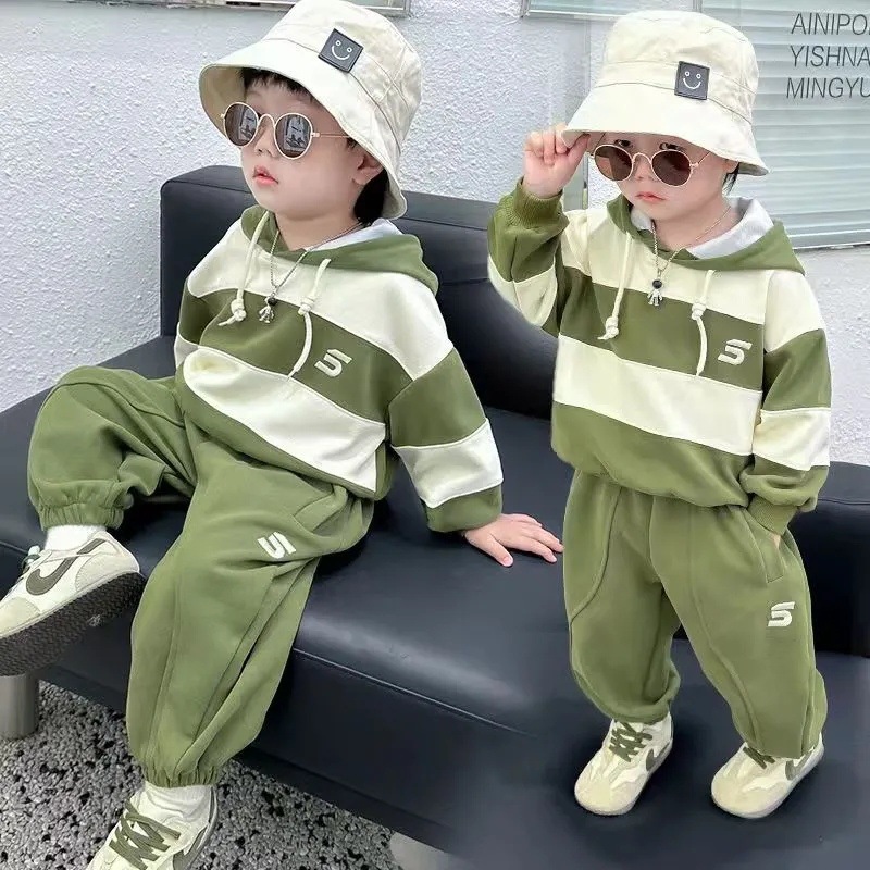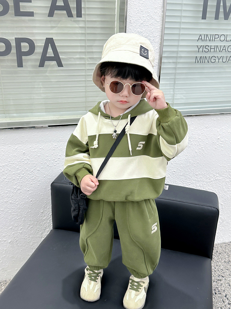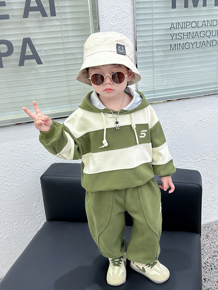 소년의 봄과 가을 세트 아기 어린이 소년의 2024 잘 생긴 외국 공기 튀김 거리 패션 옷 새로운 후드 어린이 투피스 세트