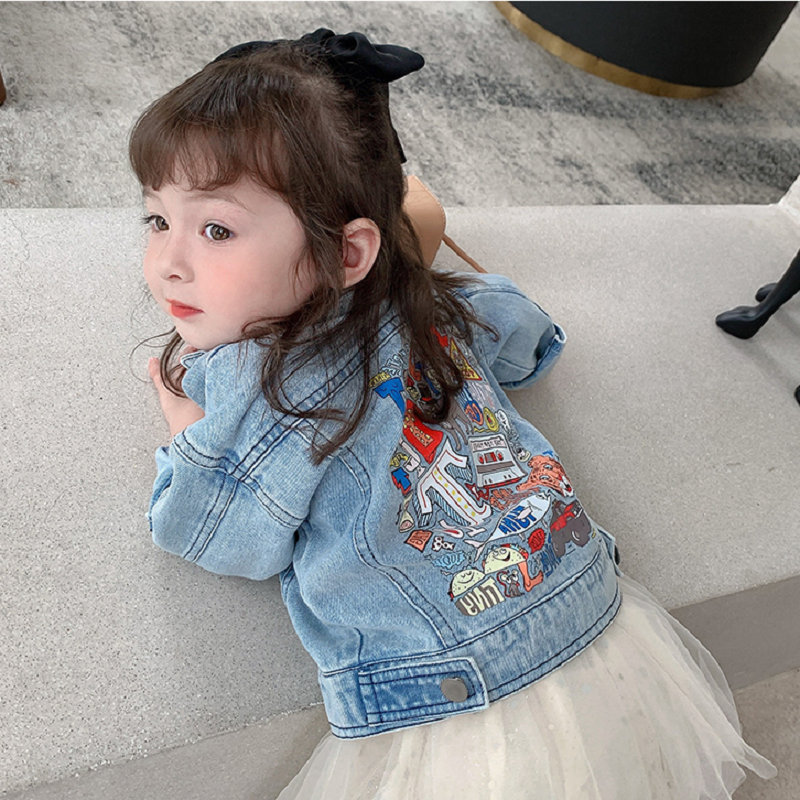 소년 소녀 코트 만화 편지 코트 청바지 2025 봄 새로운 대외 무역 아동복 3-8 세스토어 가기