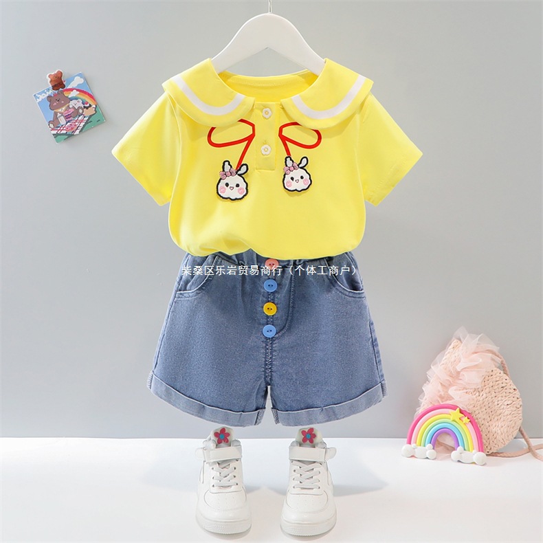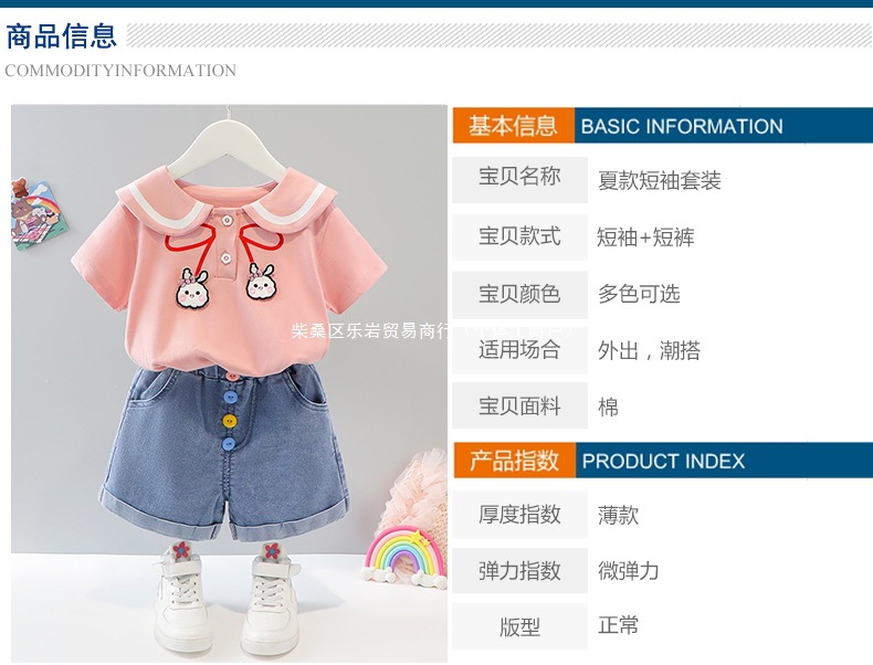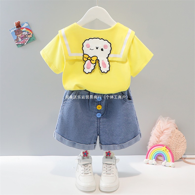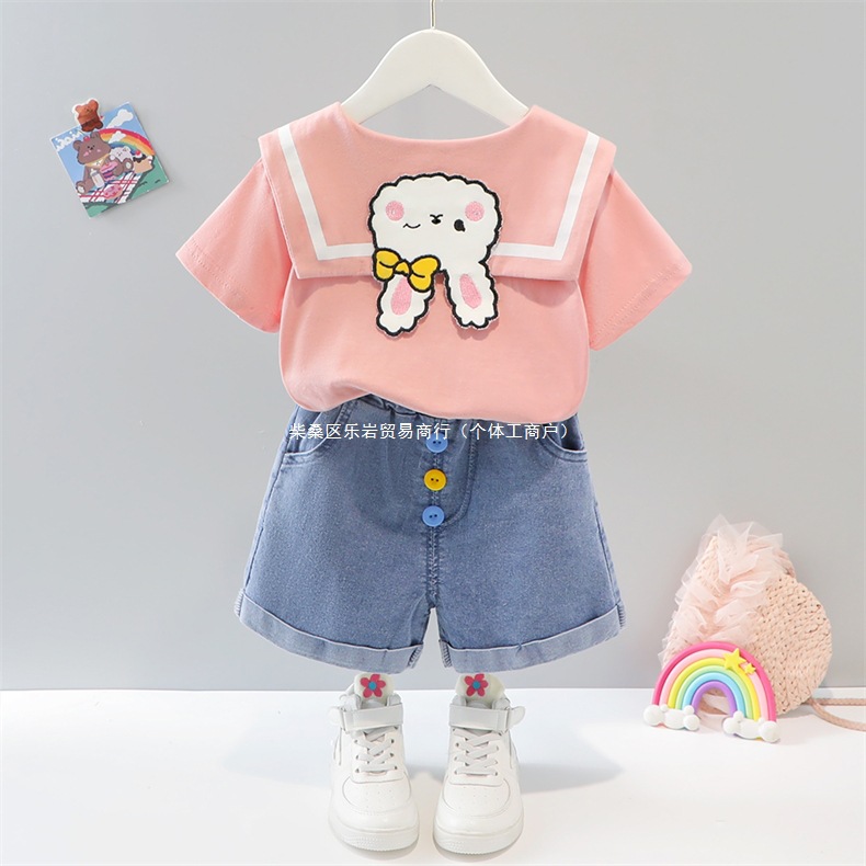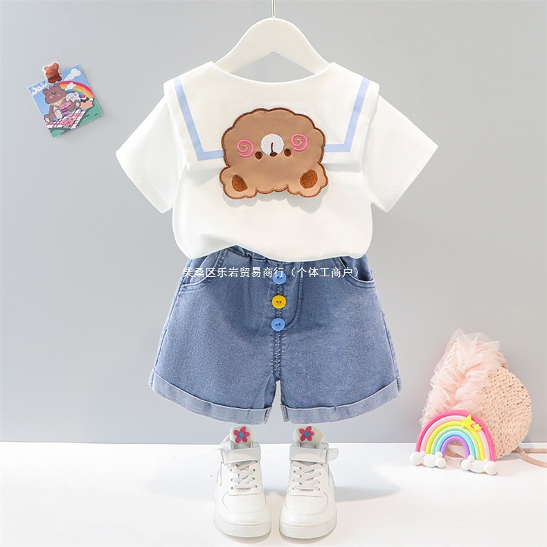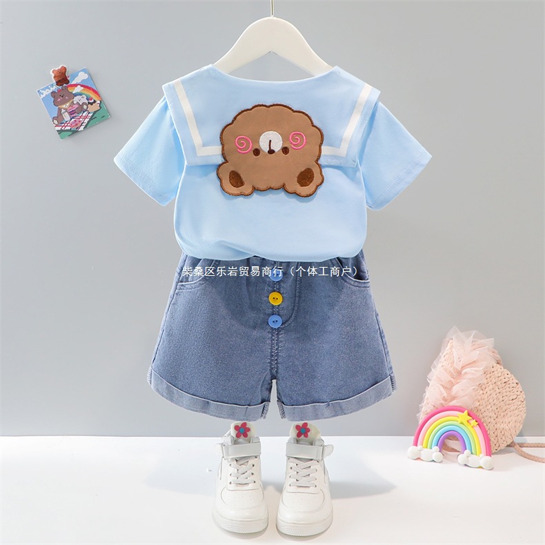 소녀 여름 세트 2025 새로운 외국 스타일 아동복 아기 소녀 해군 칼라 스커트 여름 얇은 두 도매스토어 가기
