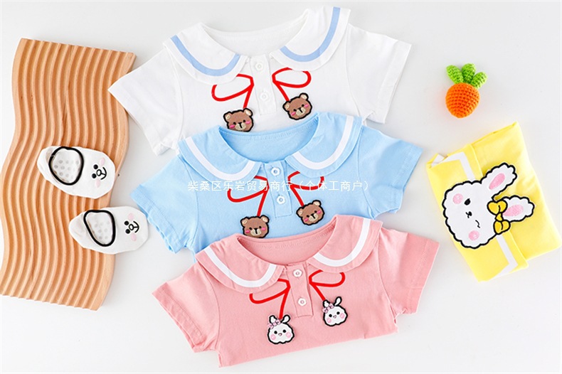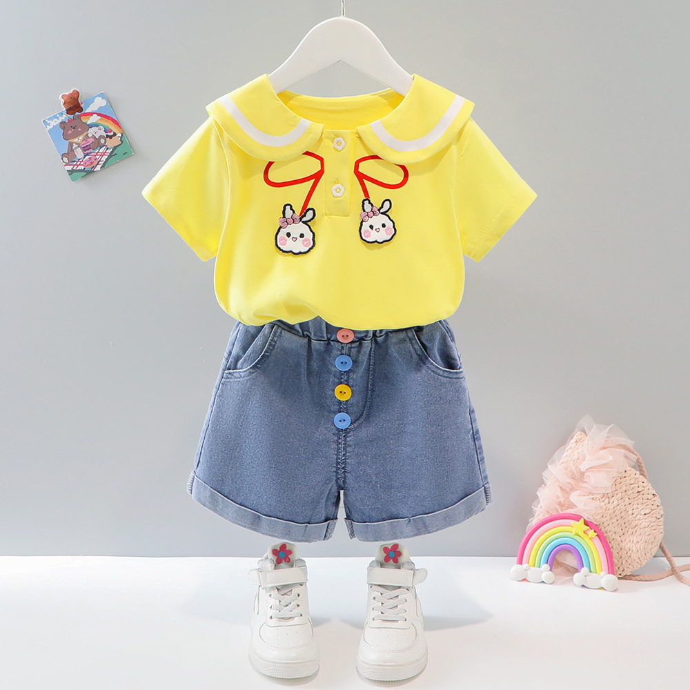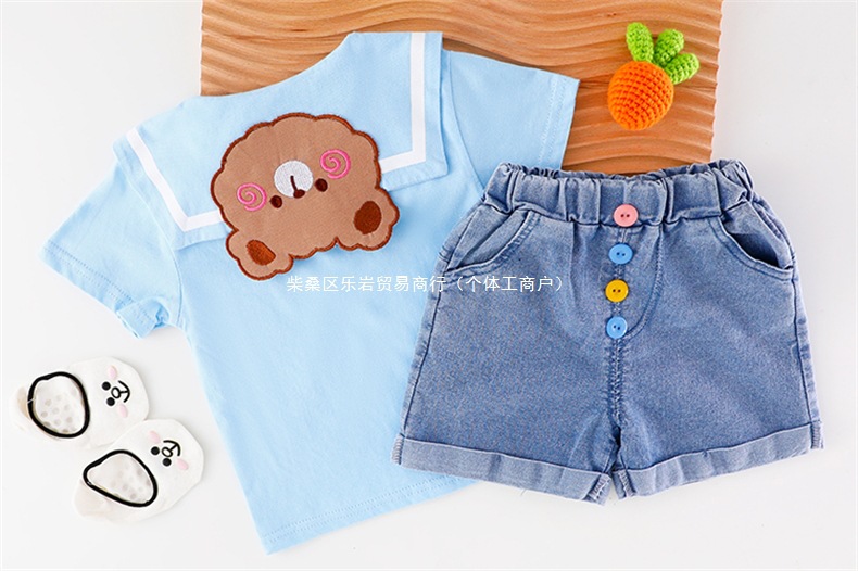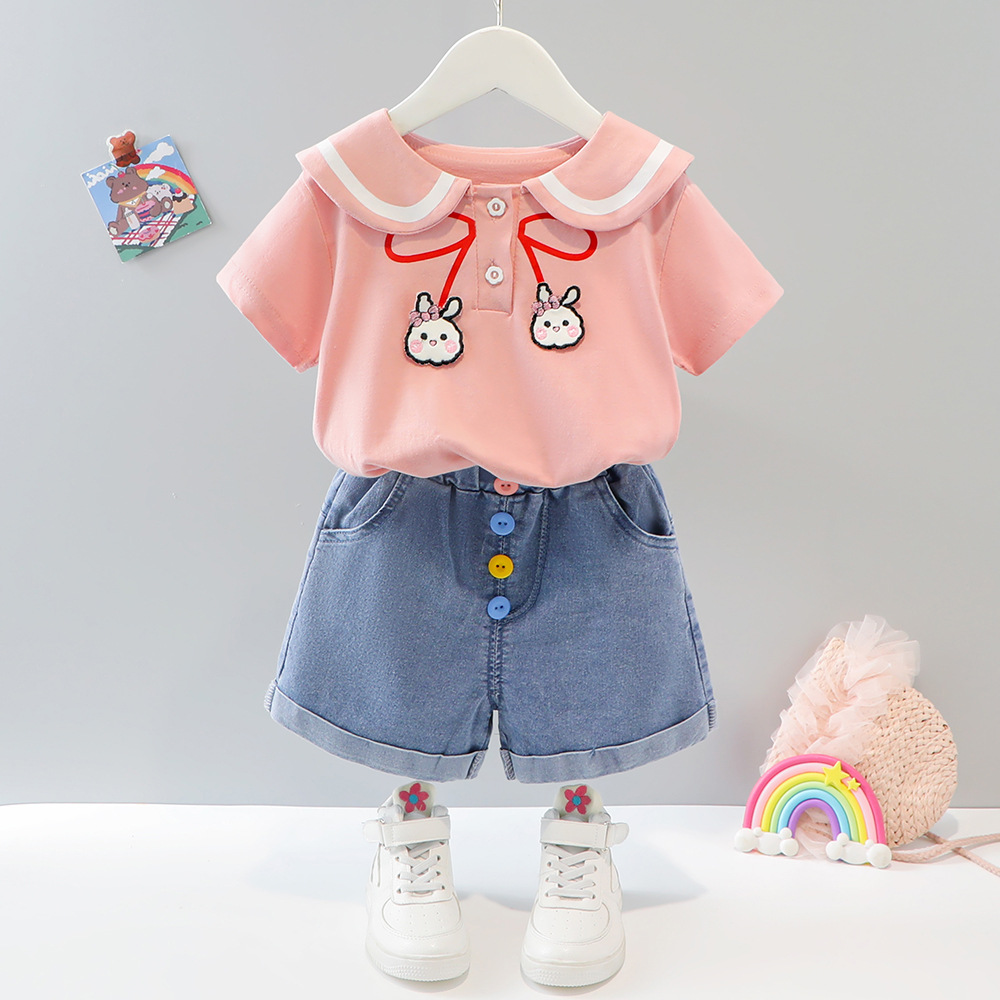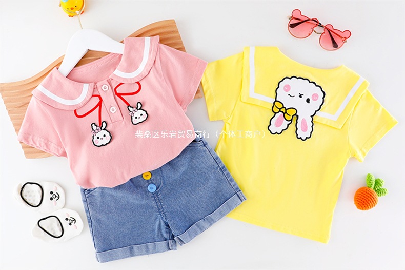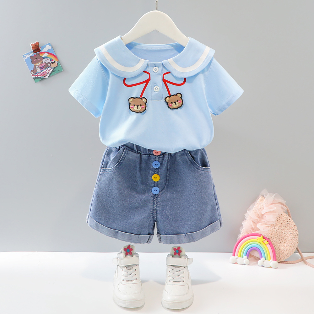 소녀 여름 세트 2025 새로운 외국 스타일 아동복 아기 소녀 해군 칼라 스커트 여름 얇은 두 도매스토어 가기