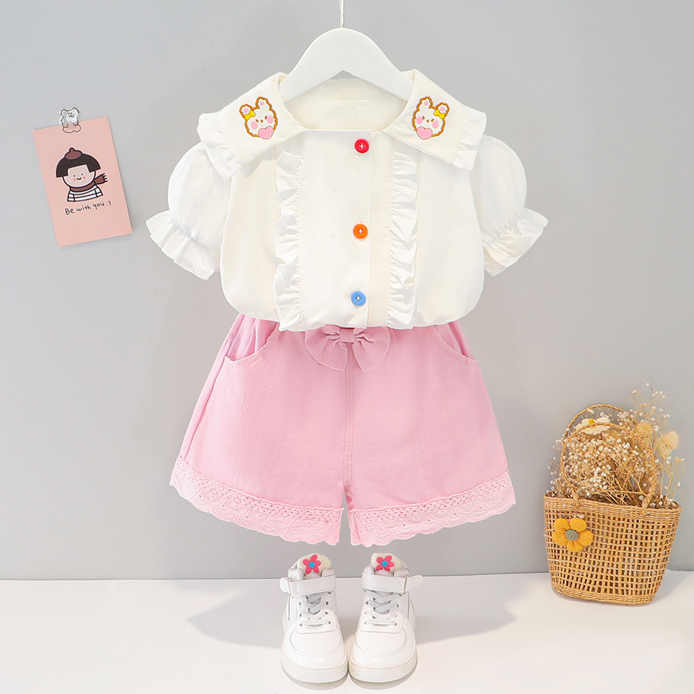 • 러브래빗 칼라반바지 투피스세트(화이트셔츠와 핑크팬츠)