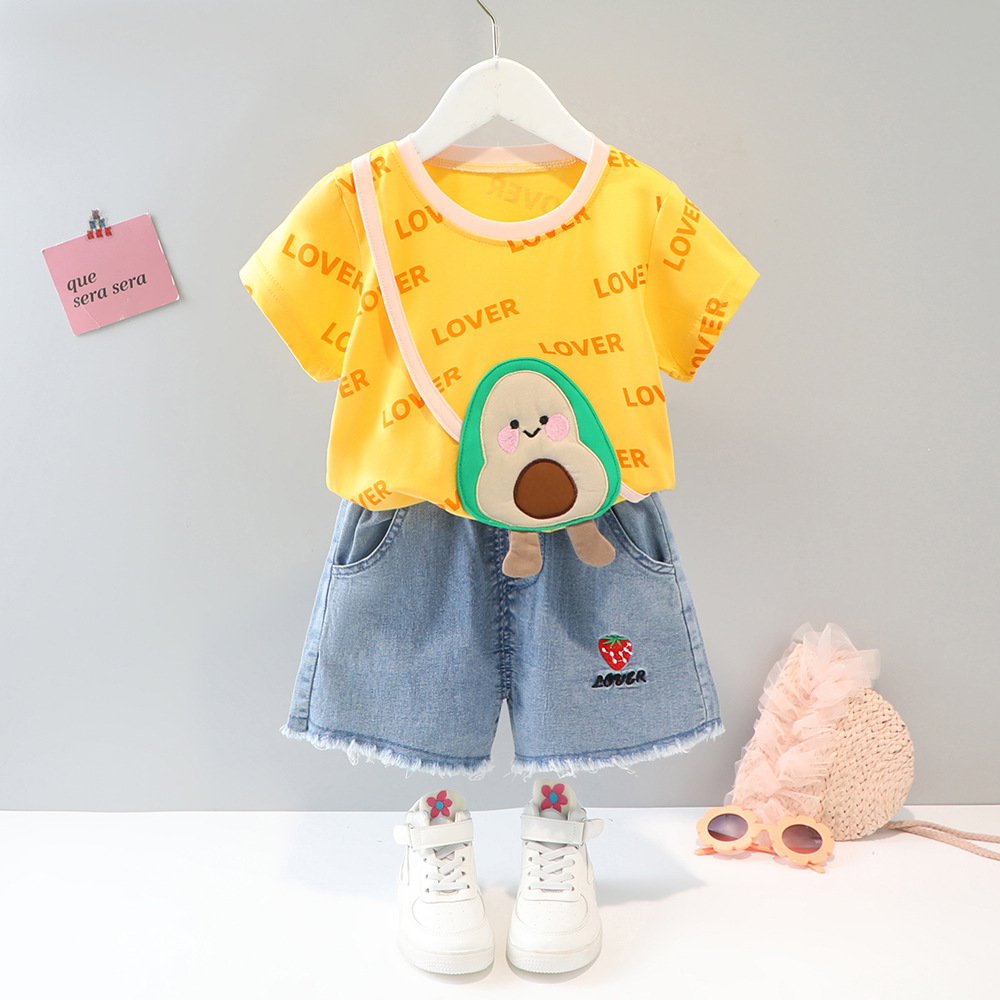 • 러버 스트로베리 사첼 데님 쇼츠 세트 (옐로우 아보카도)
