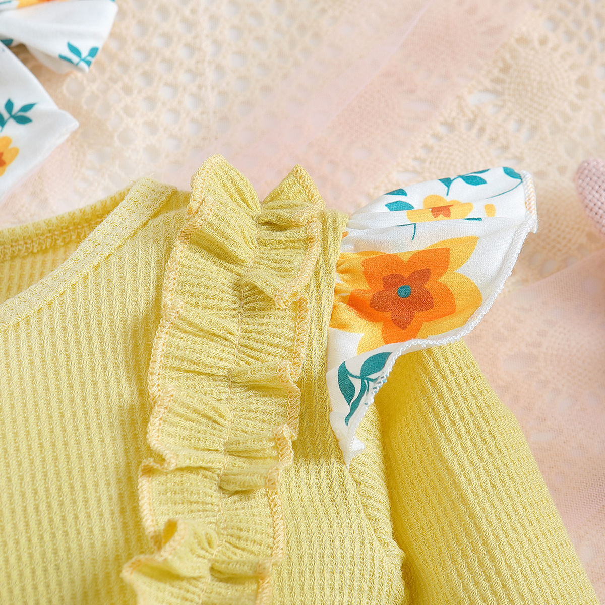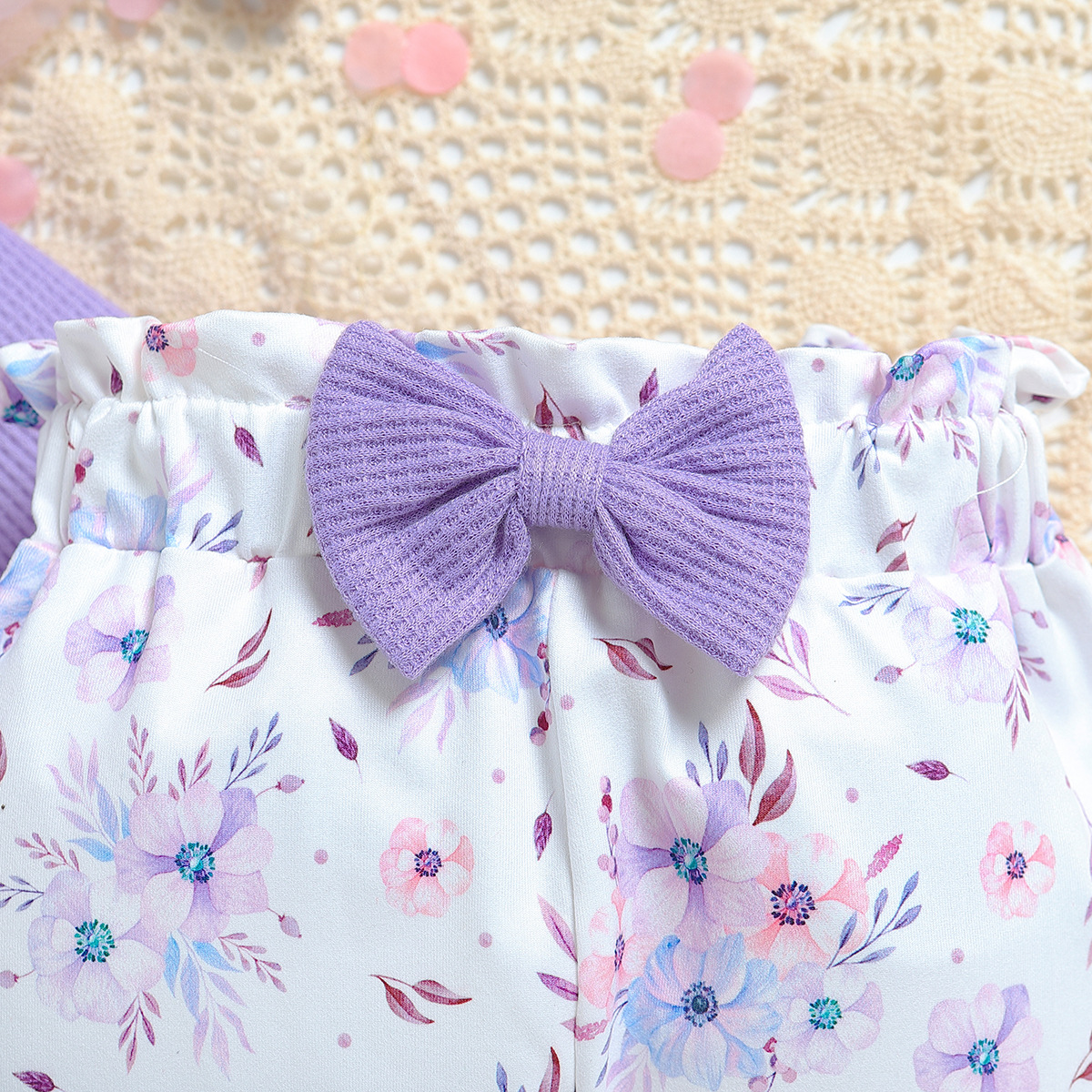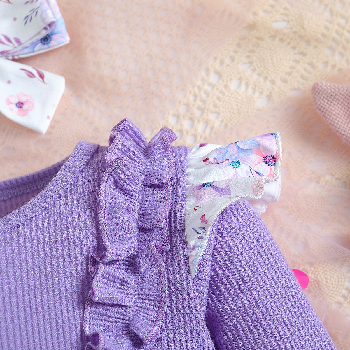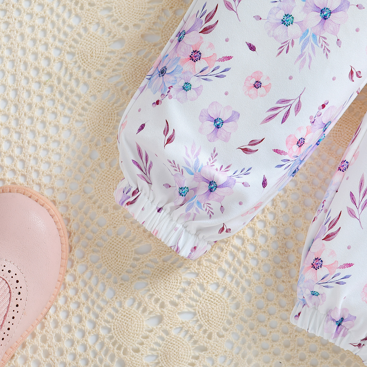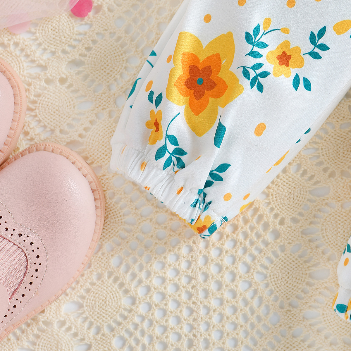 SAMGAMI BABY 국경 간 아기 봄 긴 소매 레이스 랩 방귀 의류 프린트 바지 소녀 세트스토어 가기