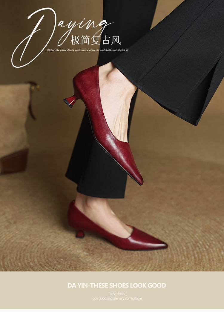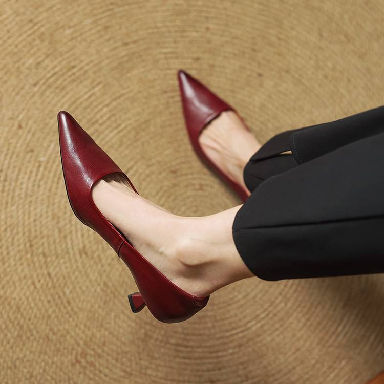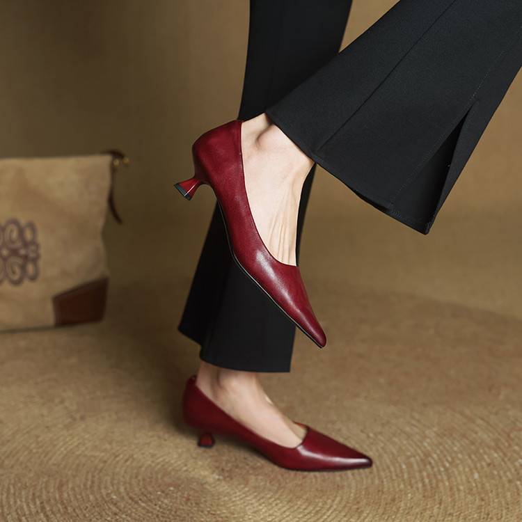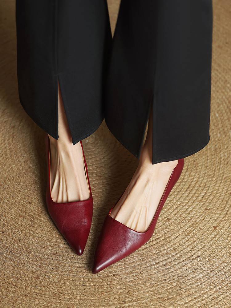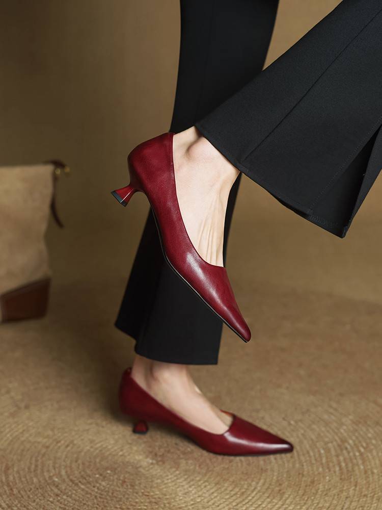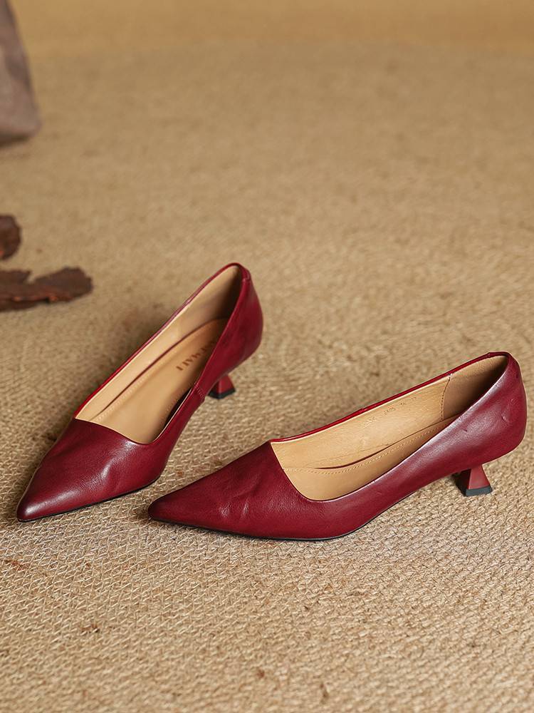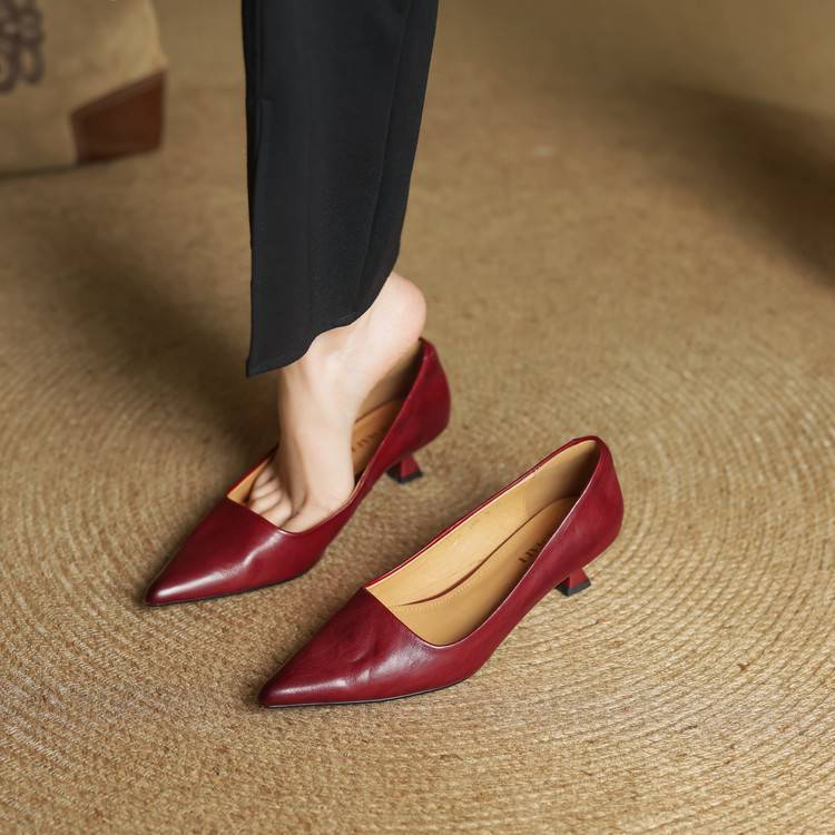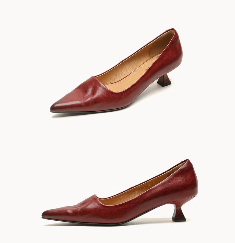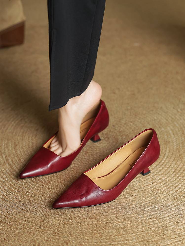 프랑스 뾰족한 스틸레토 힐은 피곤하지 않은 빨간 얕은 미드 힐 레트로 얕은 신발 여성용 통근 작업 신발스토어 가기